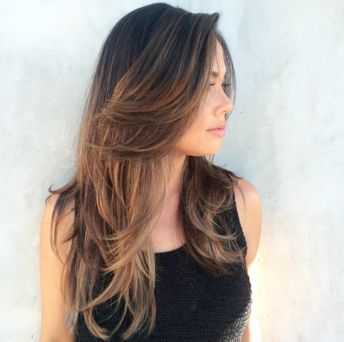 Каскад на длинные черные волосы без челки