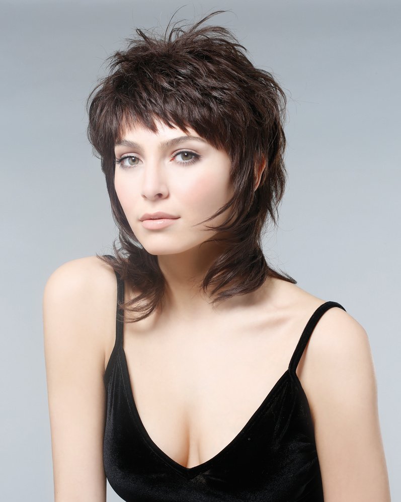 Стрижка Каскад Гаврош на средние волосы с челкой