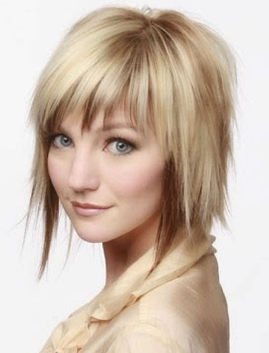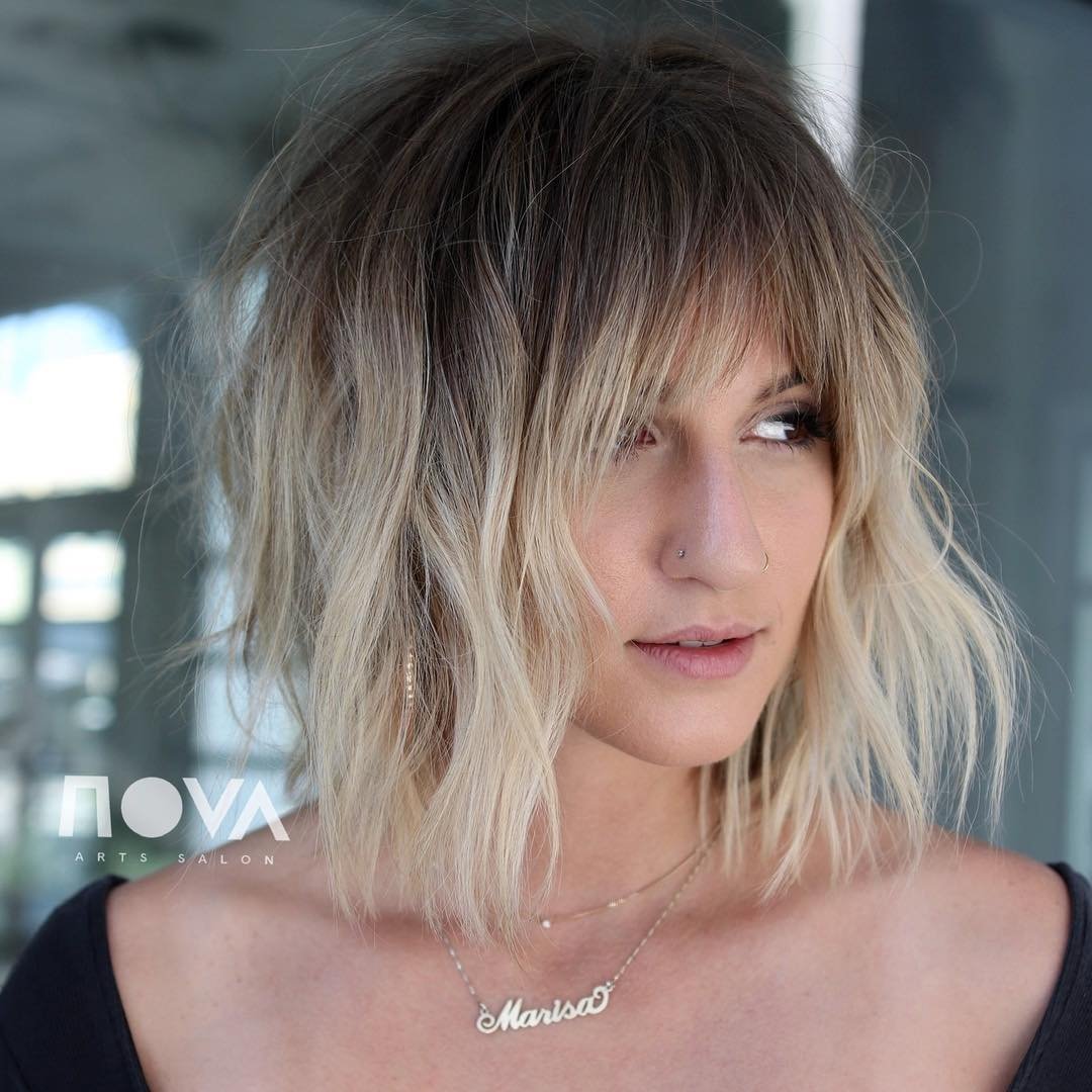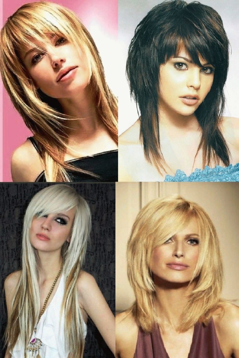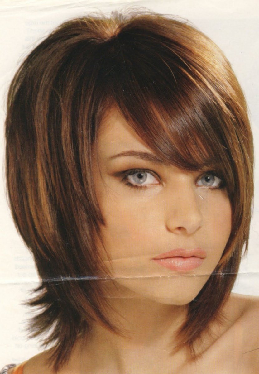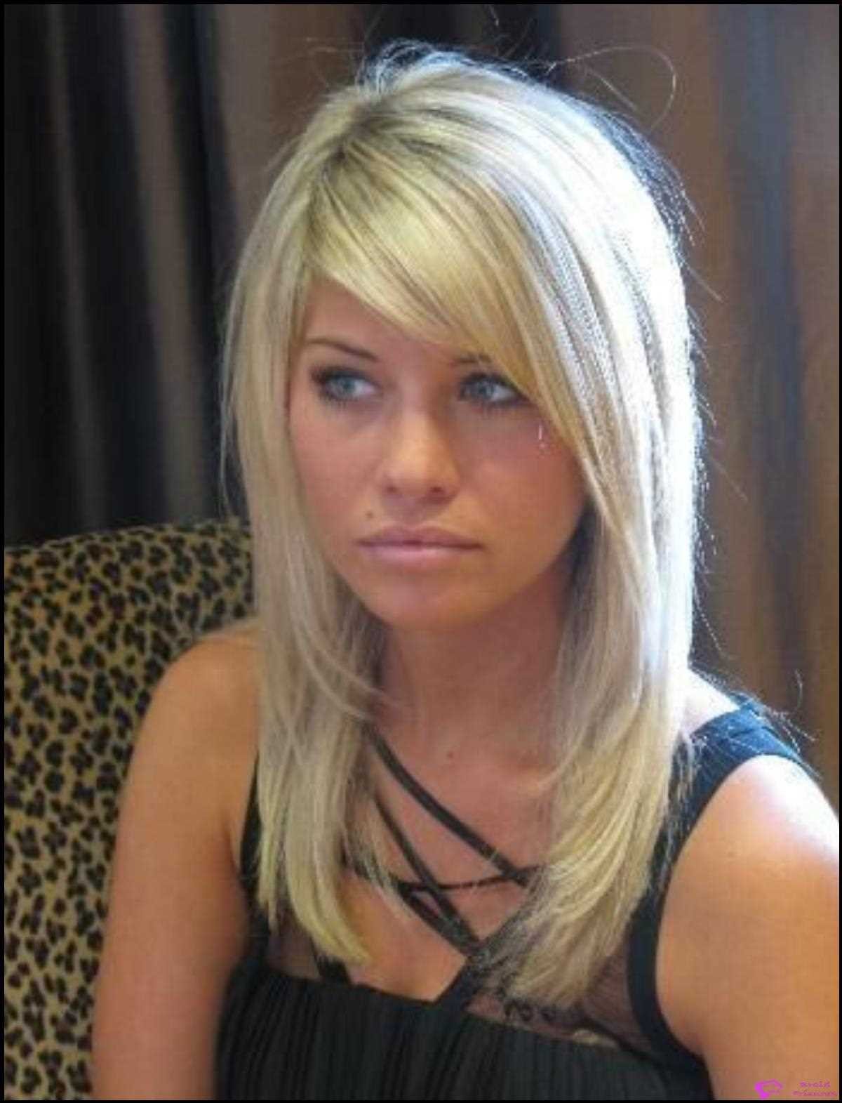Стрижки Каскад на средние волосы с челкой асимметрия