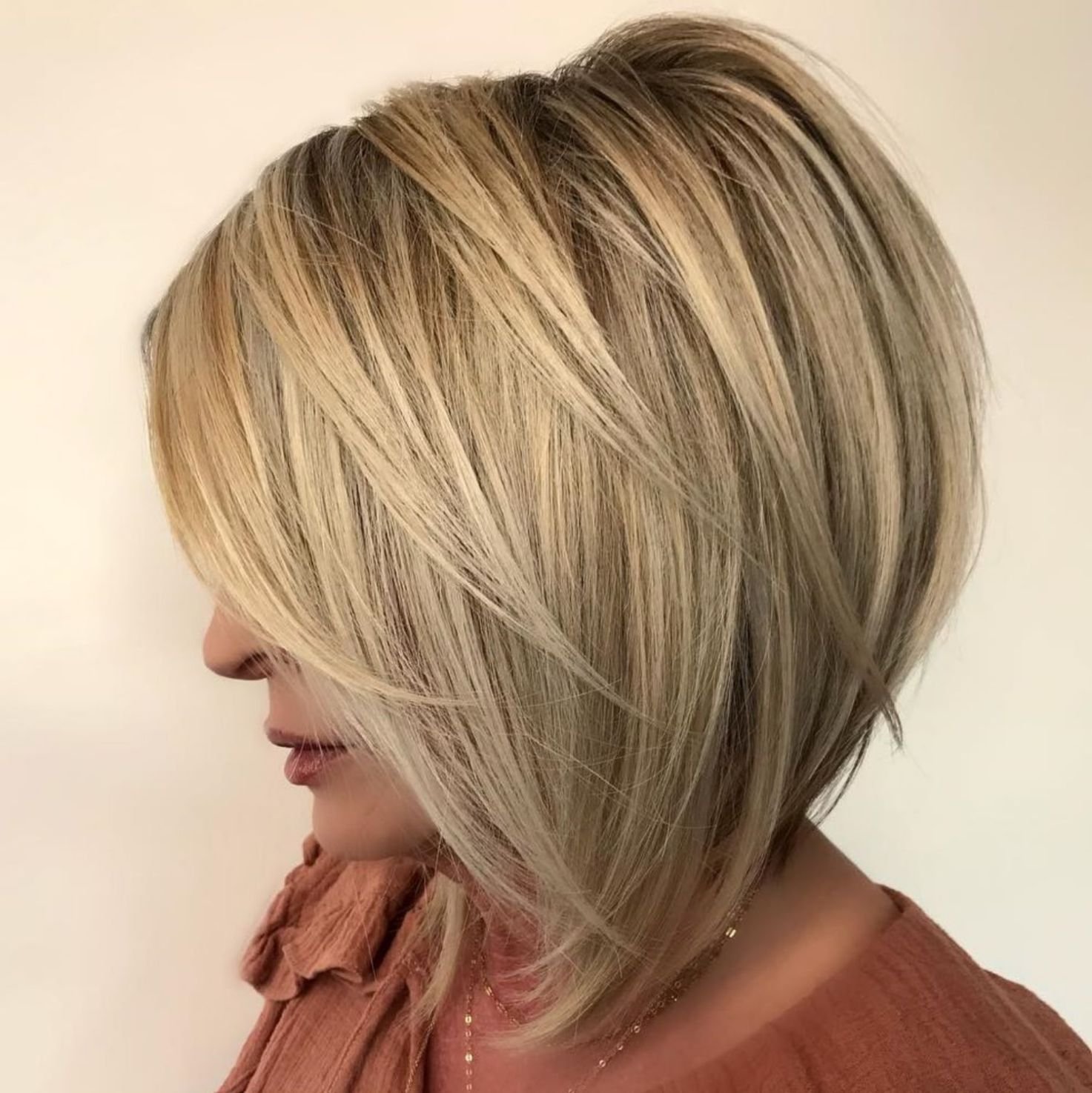 Стрижка Каскад Боб на средние волосы для женщины 50