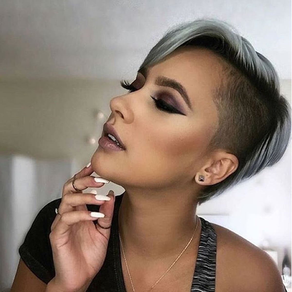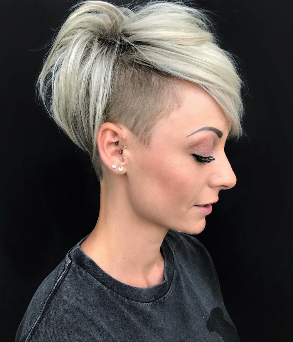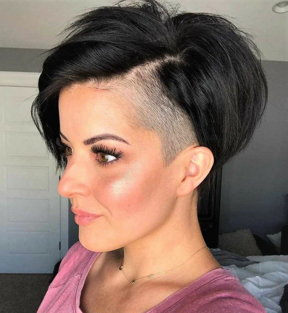 Стрижки Пикси средние с выстриженным виском