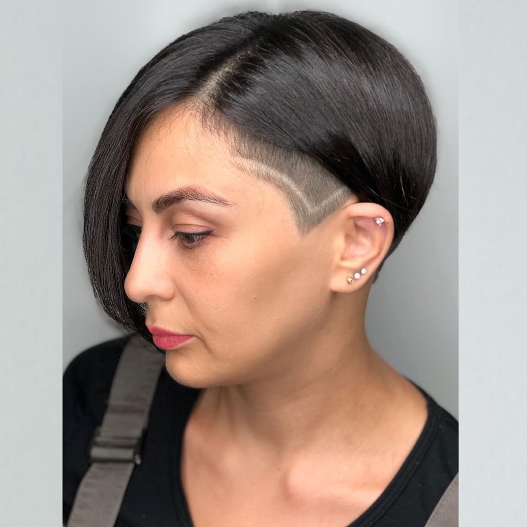 Стрижка боб с выбритым виском