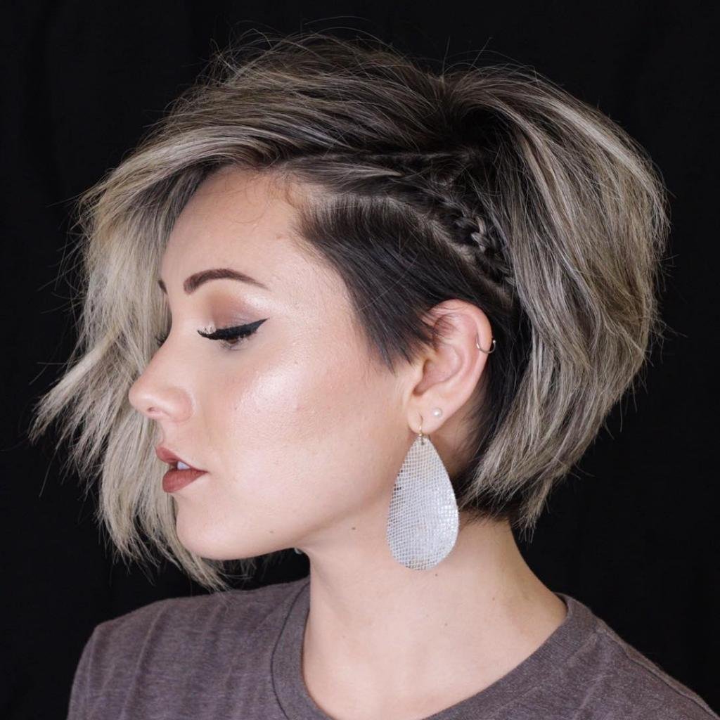 Стрижка Пикси с выбритым виском на средние волосы