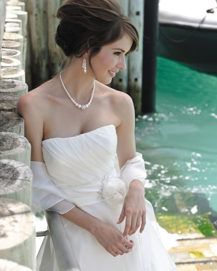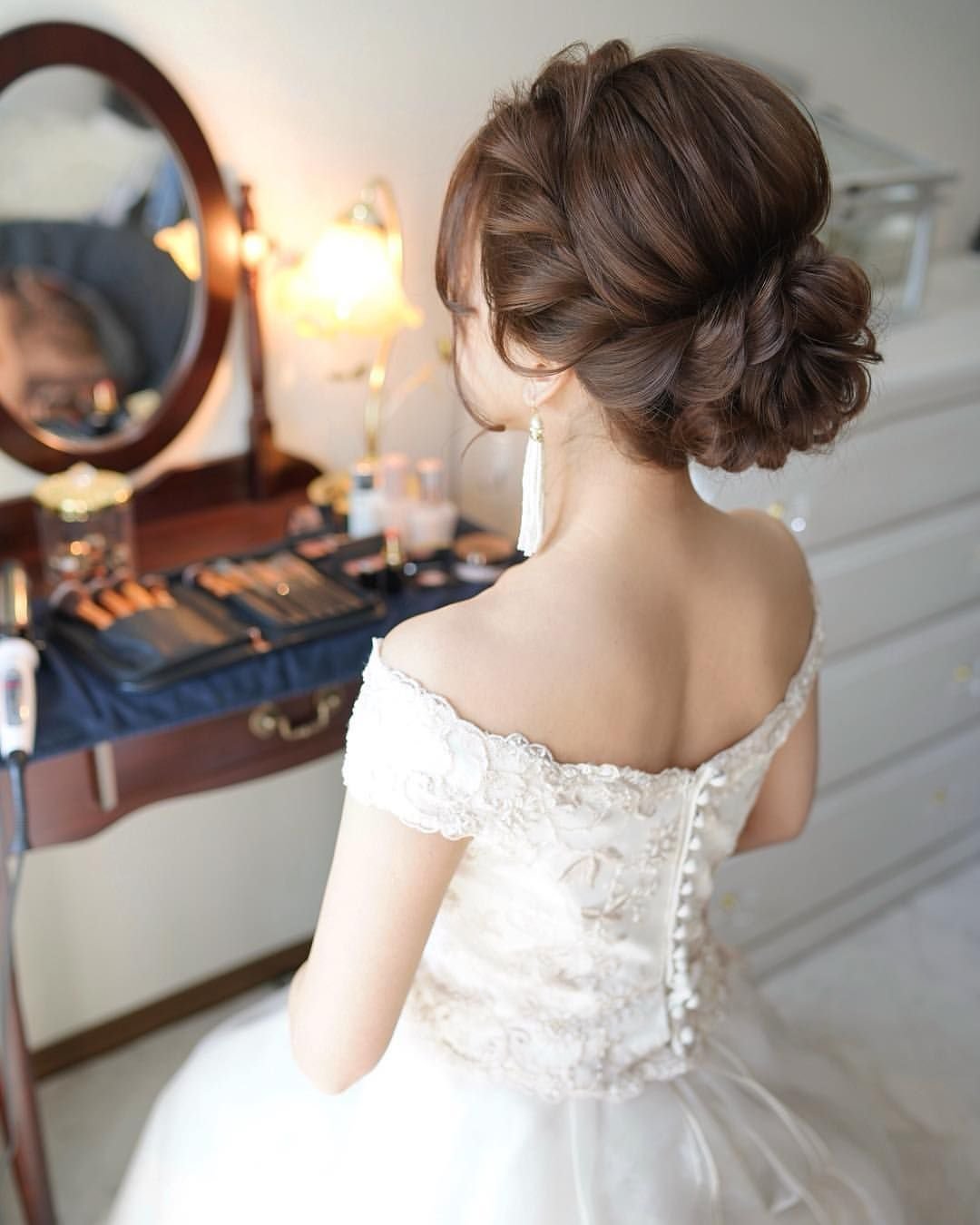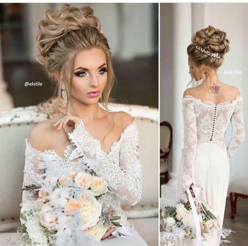 Прическа под свадебное платье с открытыми плечами