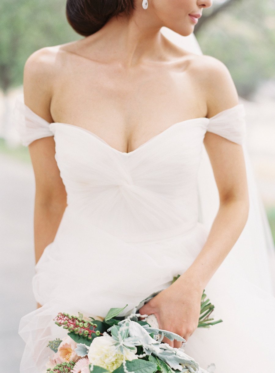 Свадебное платье с открытыми плечами