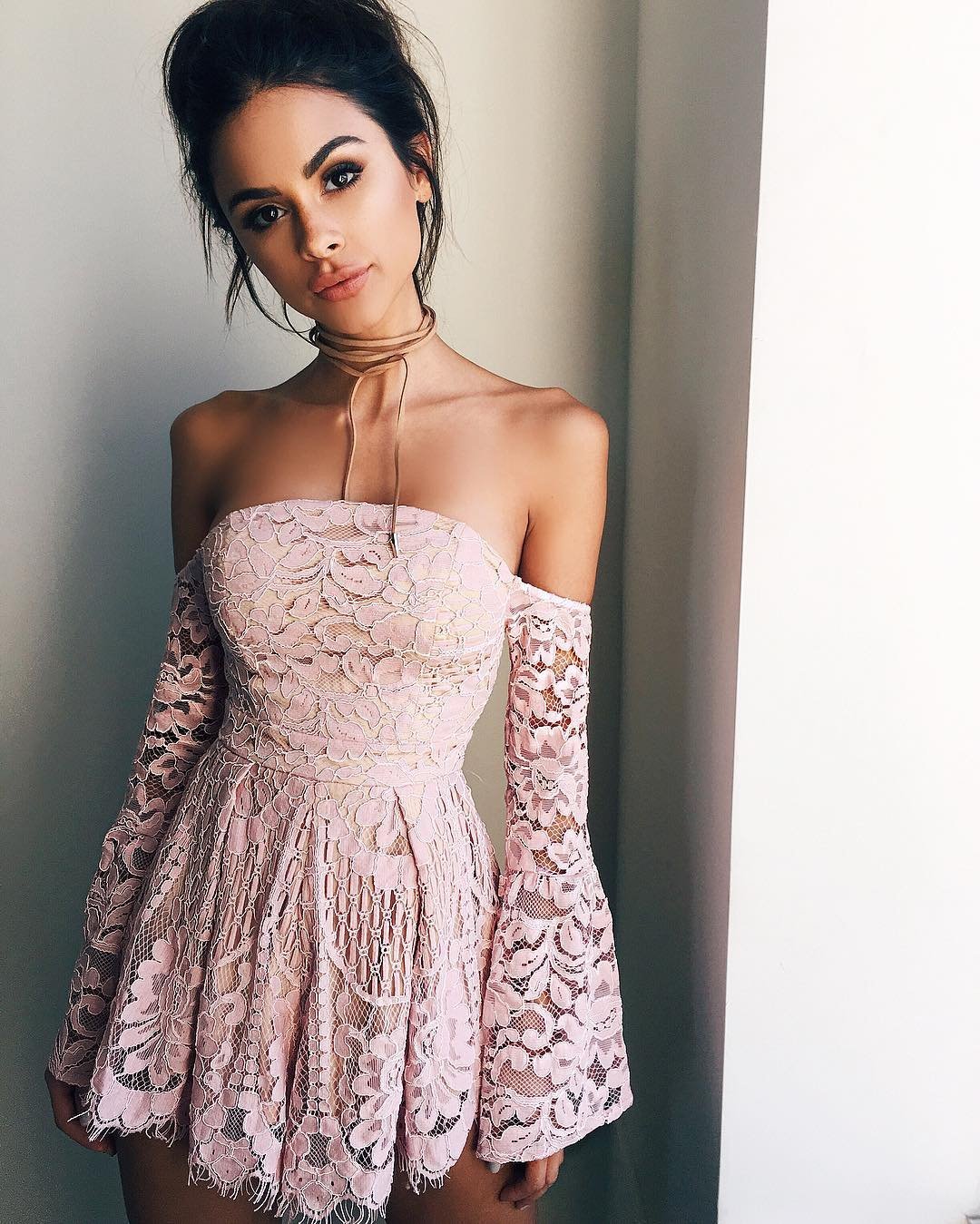 Прическа к платью с открытыми плечами