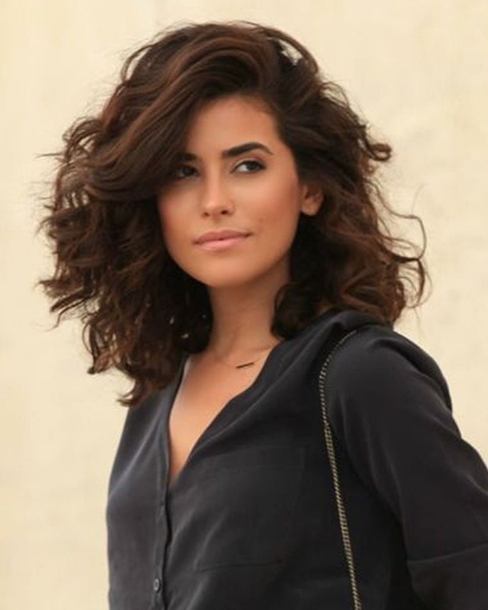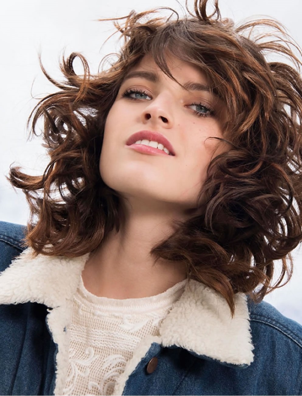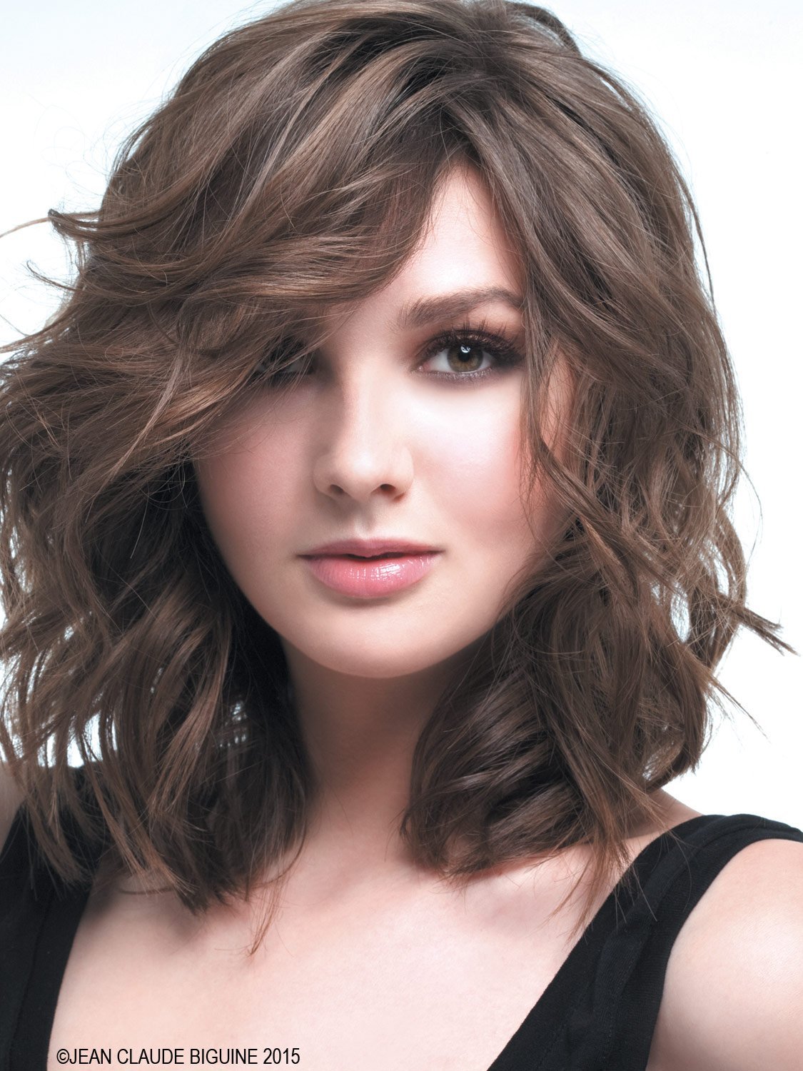 Стрижка Каскад на средние волосы с челкой 2022 на волнистые волосы