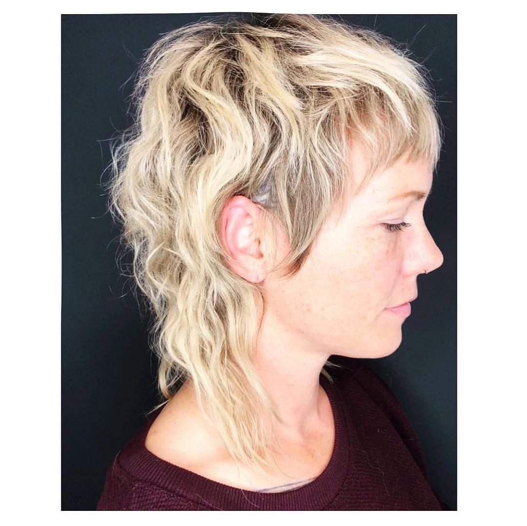 Стрижка маллет на волнистые светлые волосы