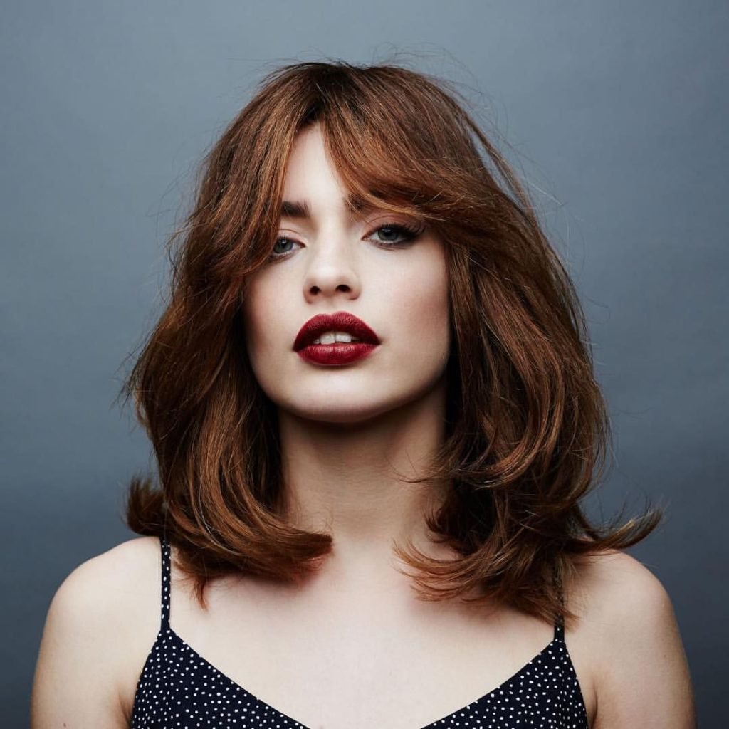 Каскадная стрижка с челкой шторкой