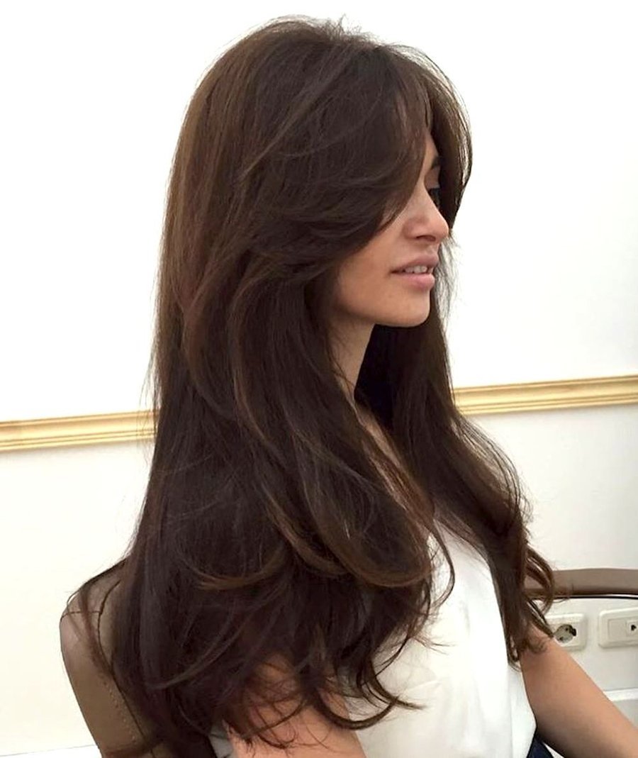 Стрижка на длинные прямые волосы с челкой