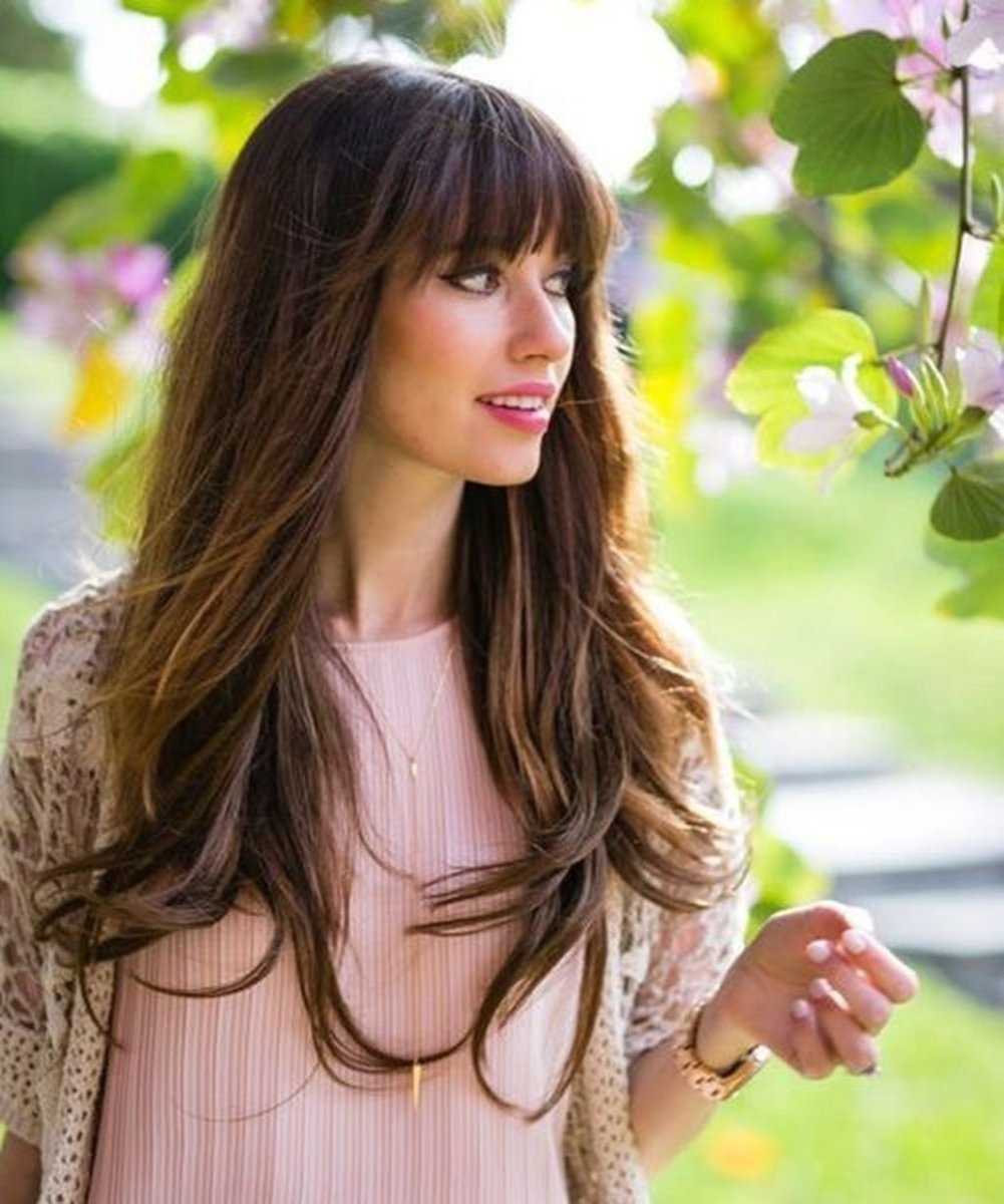 Стильная челка для длинных волос