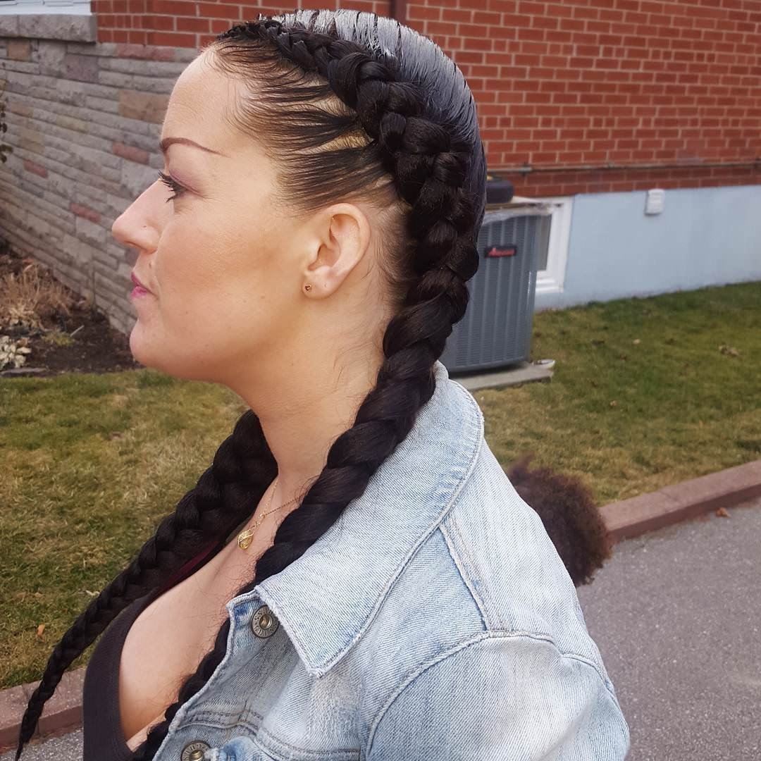 Брейды в хвост на круглое лицо