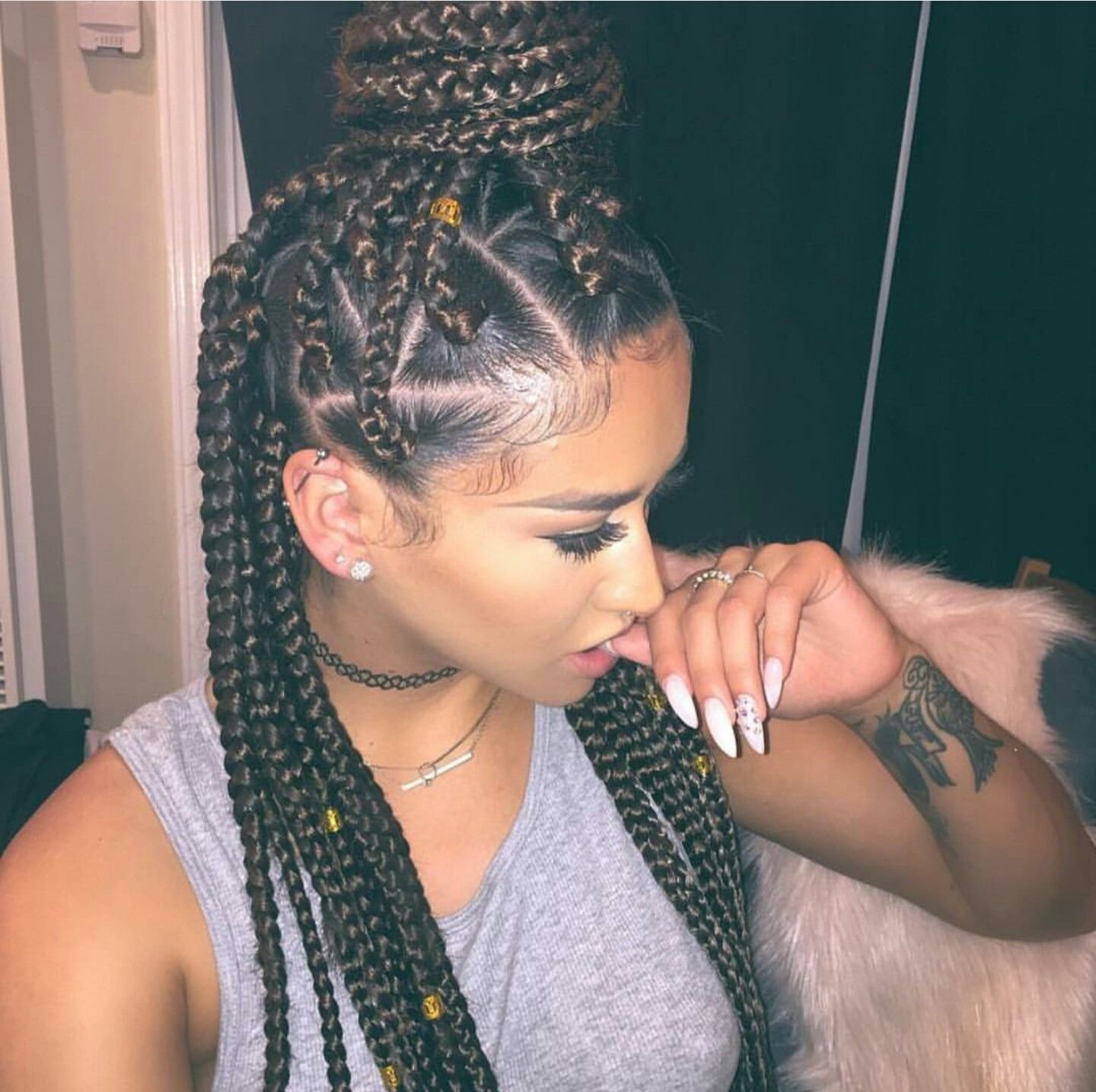Сфинкс (французские косички + афрокосички)