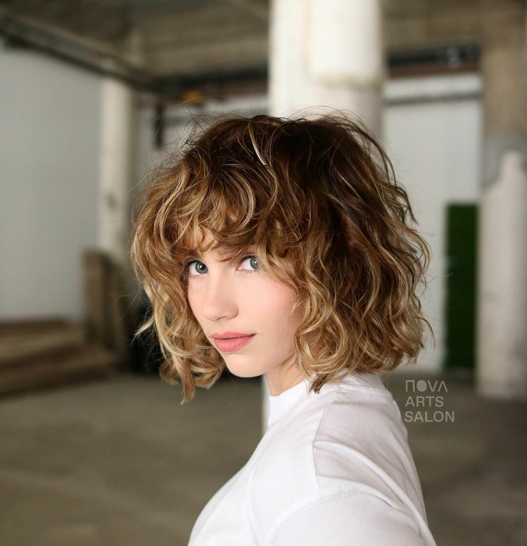 Стрижка Боб-каре на короткие вьющиеся волосы
