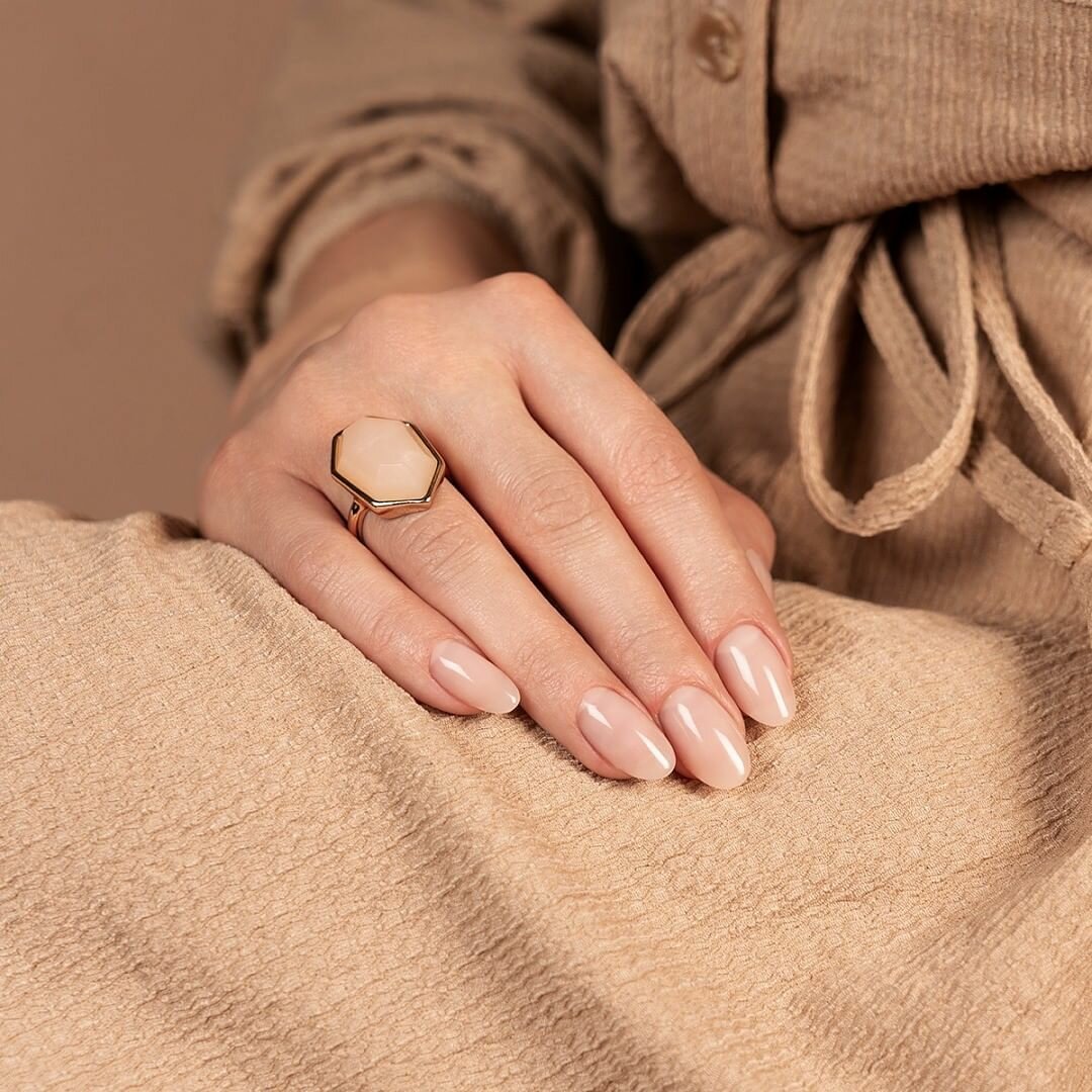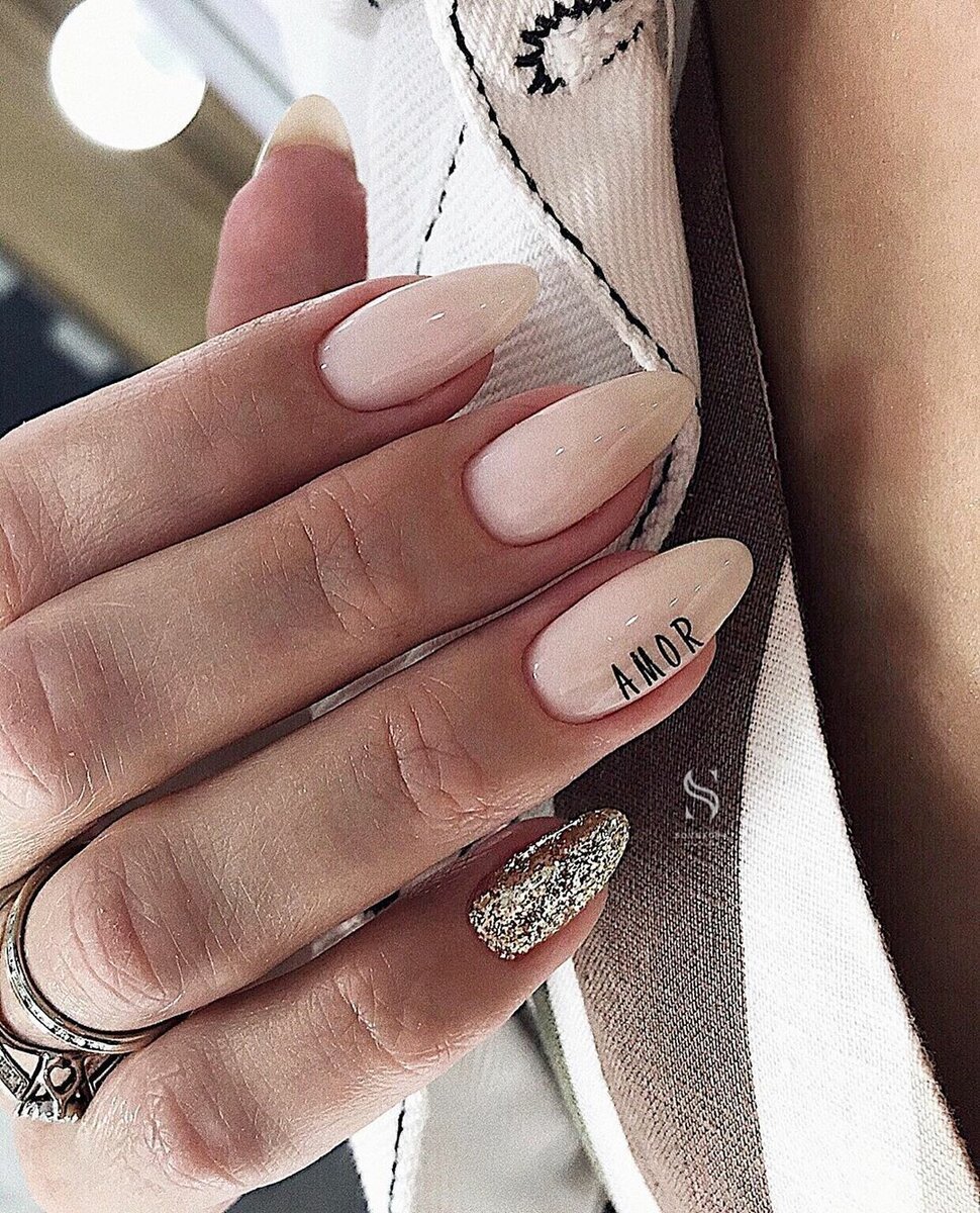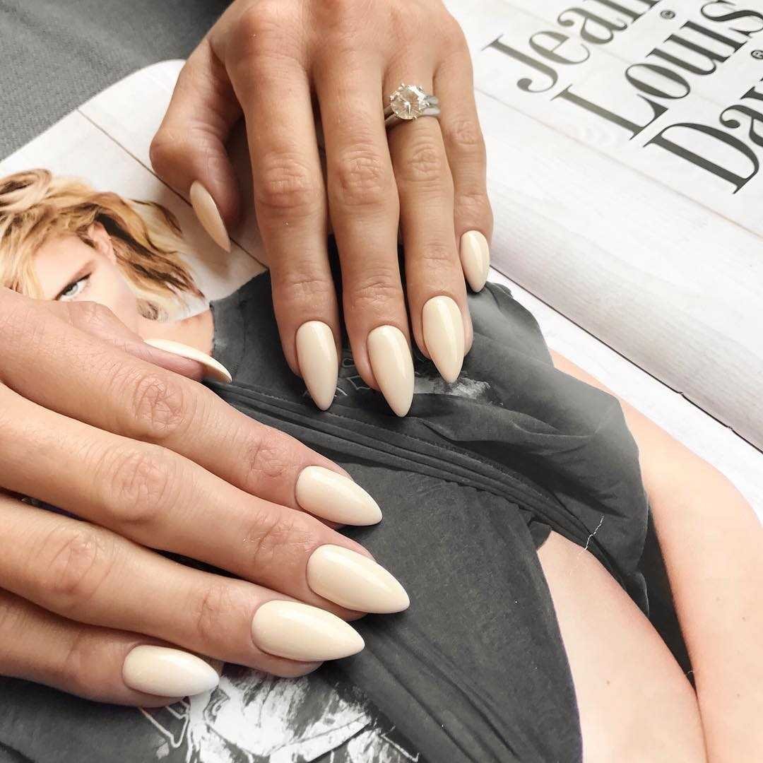 Нюд маникюр на миндалевидных ногтях