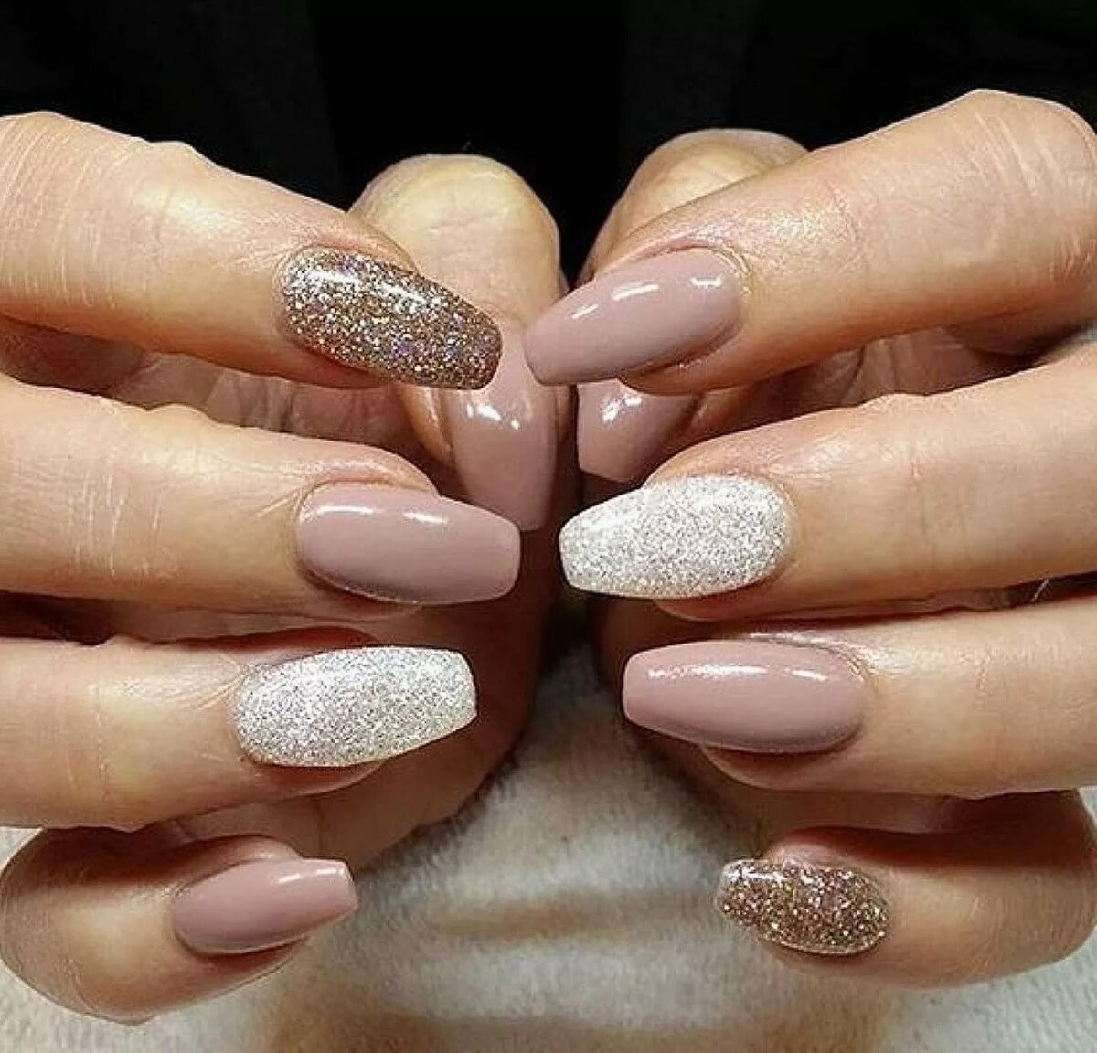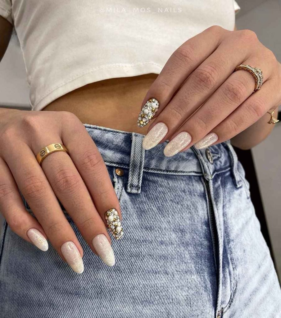 Ногти бежевые с блестками