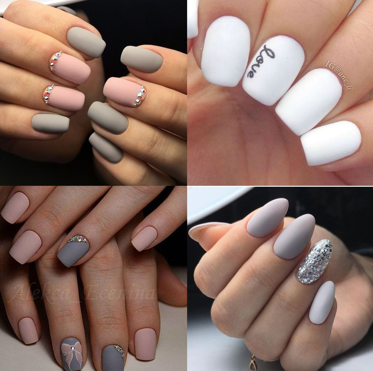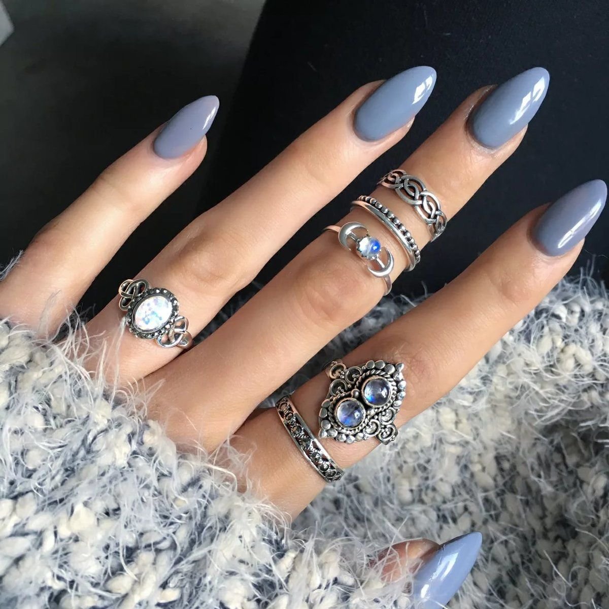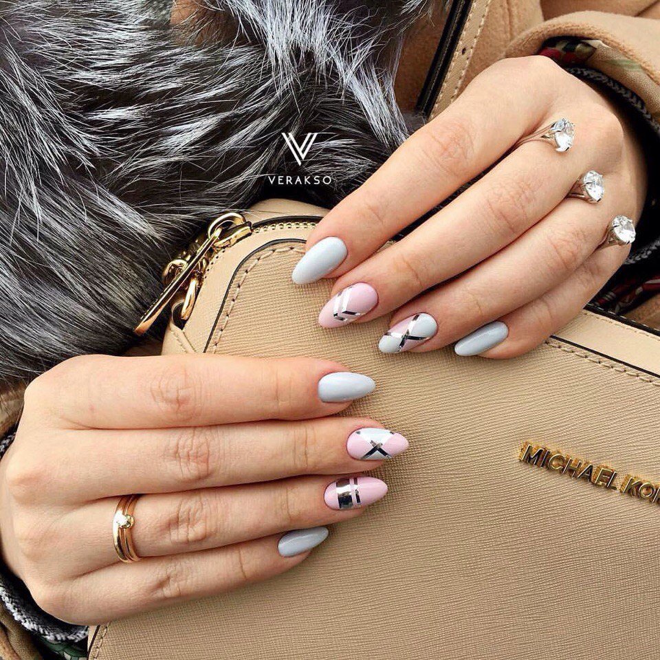 Серые ногти длинные миндалевидные ногти