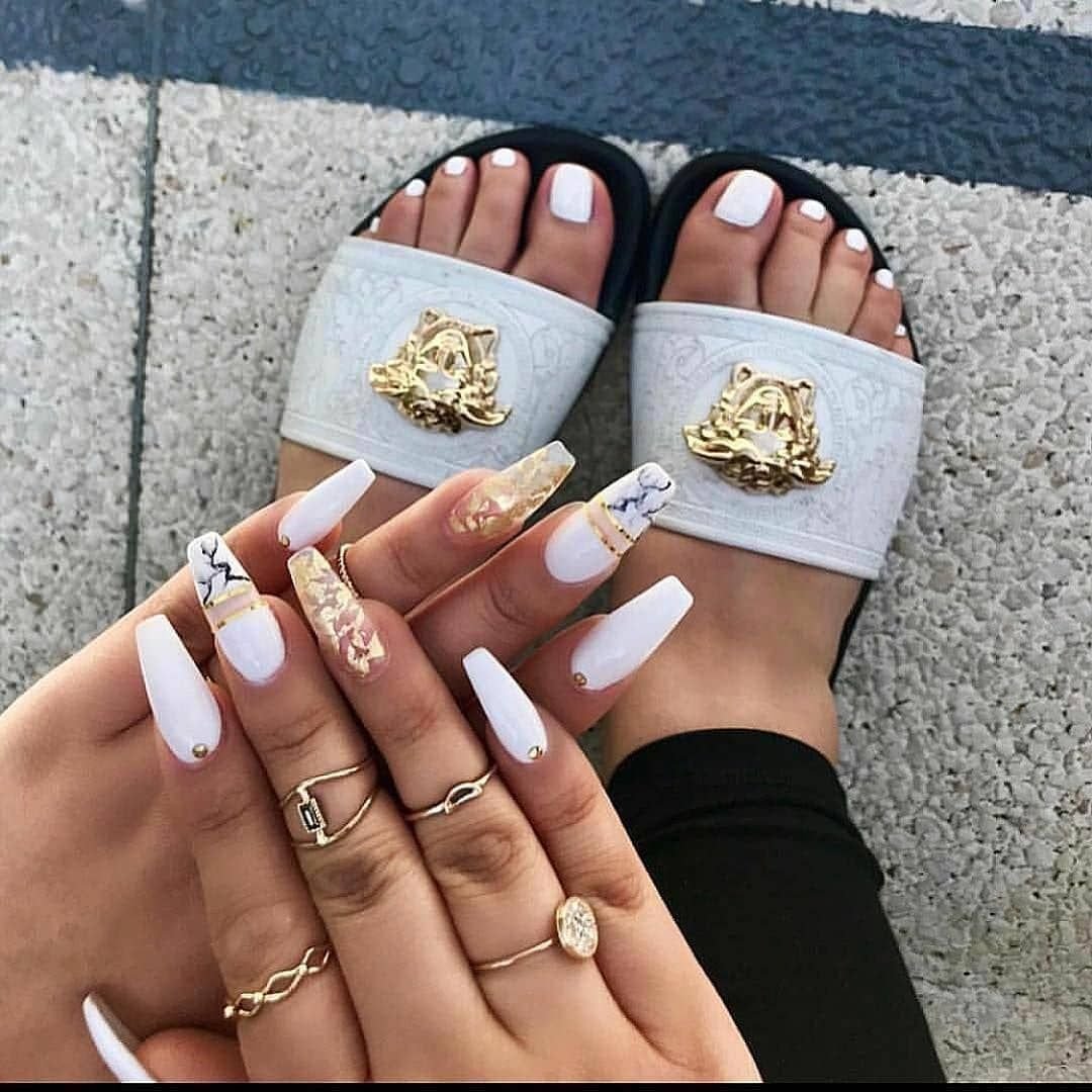 Педикюр белый с золотом