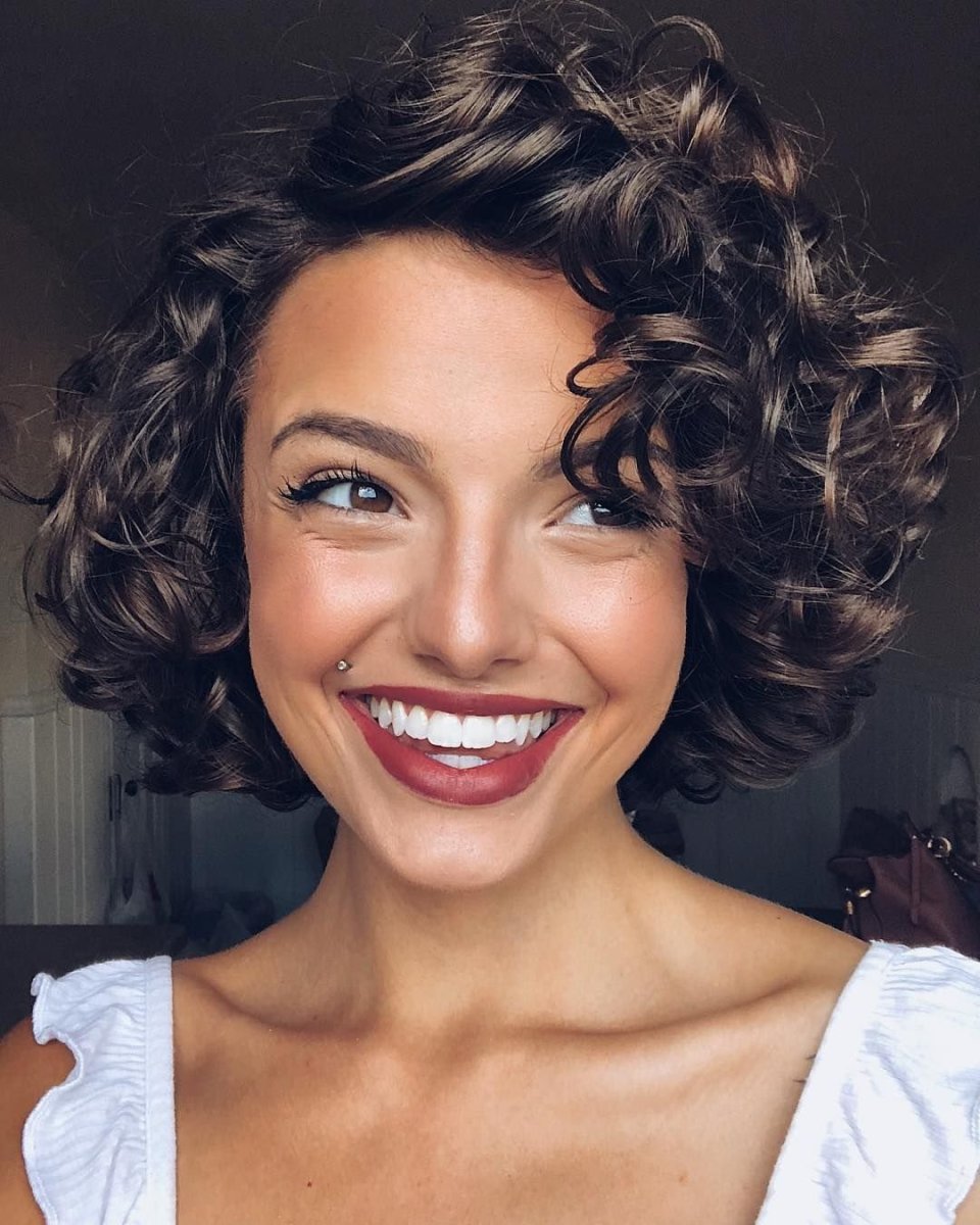 Стрижка Боб каре на короткие без челки кудрявые волосы