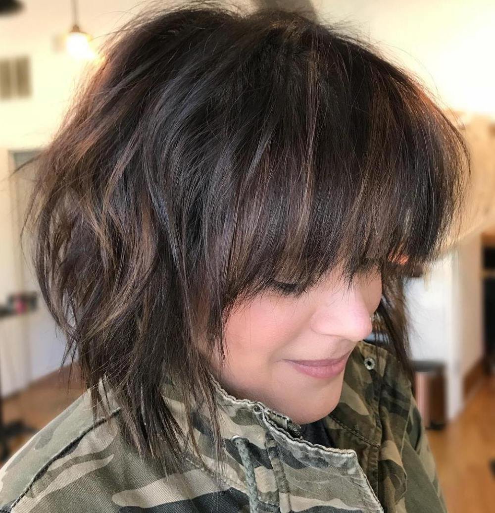 Стрижка Каскад Гаврош на средние волосы с челкой