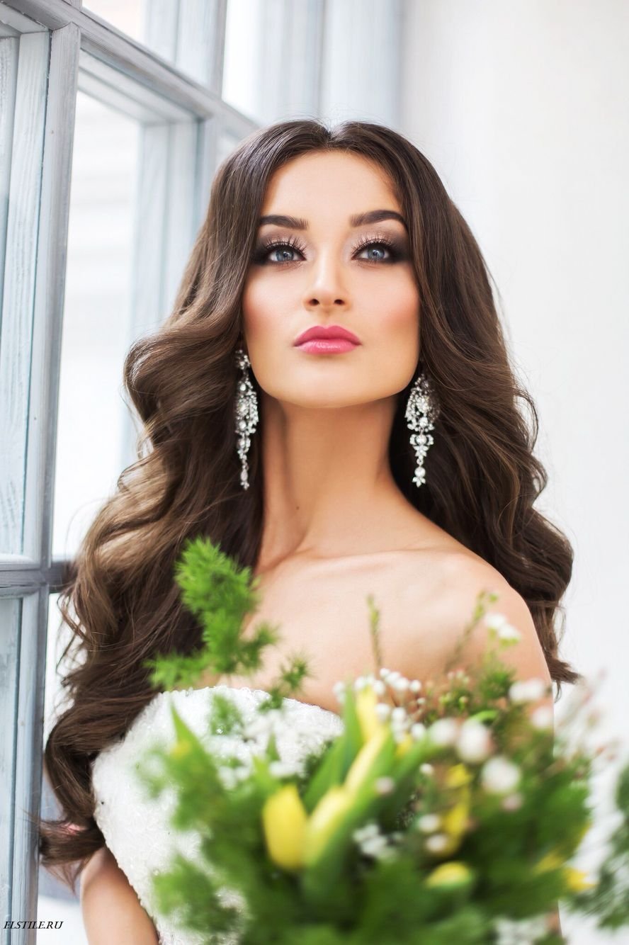 Макияж и прическа невесты длинные волосы