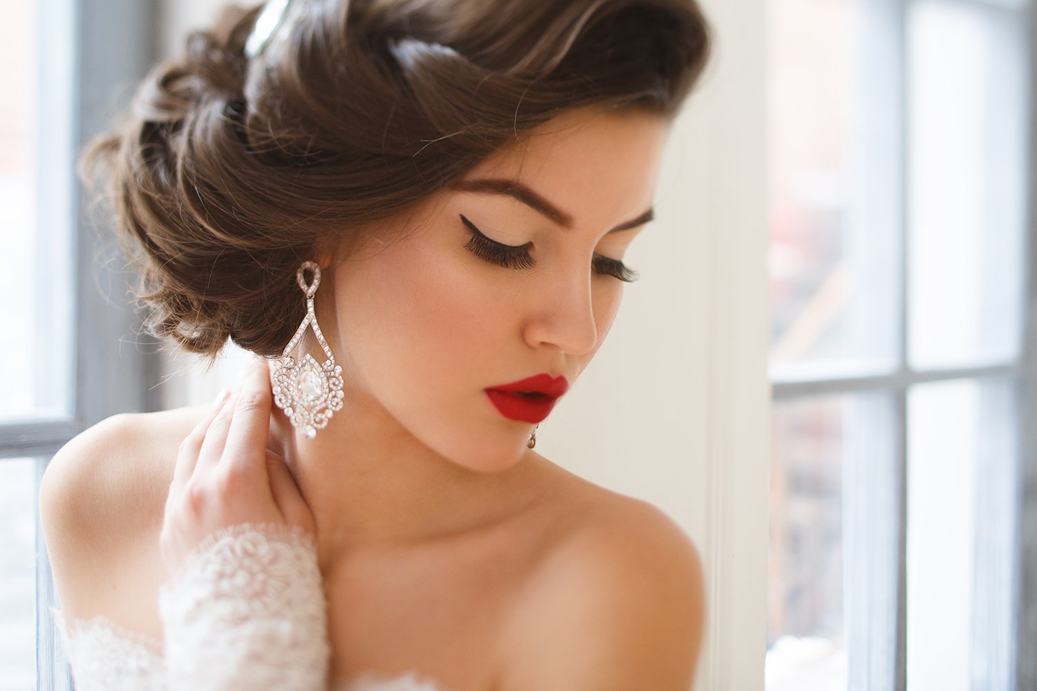 Свадебный макияж с красными губами