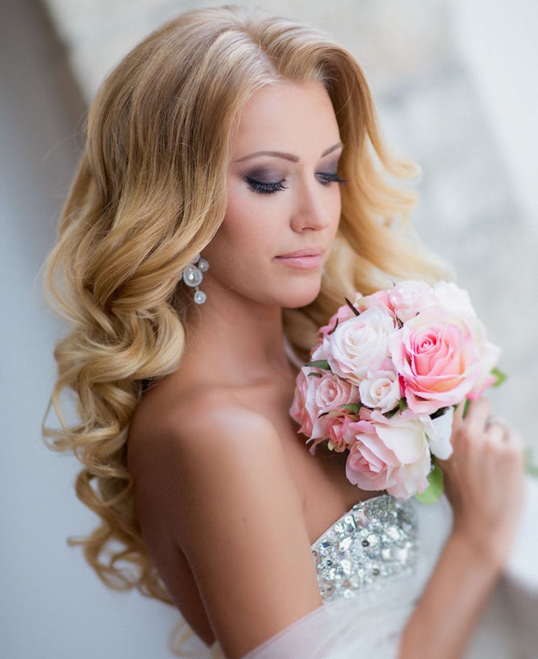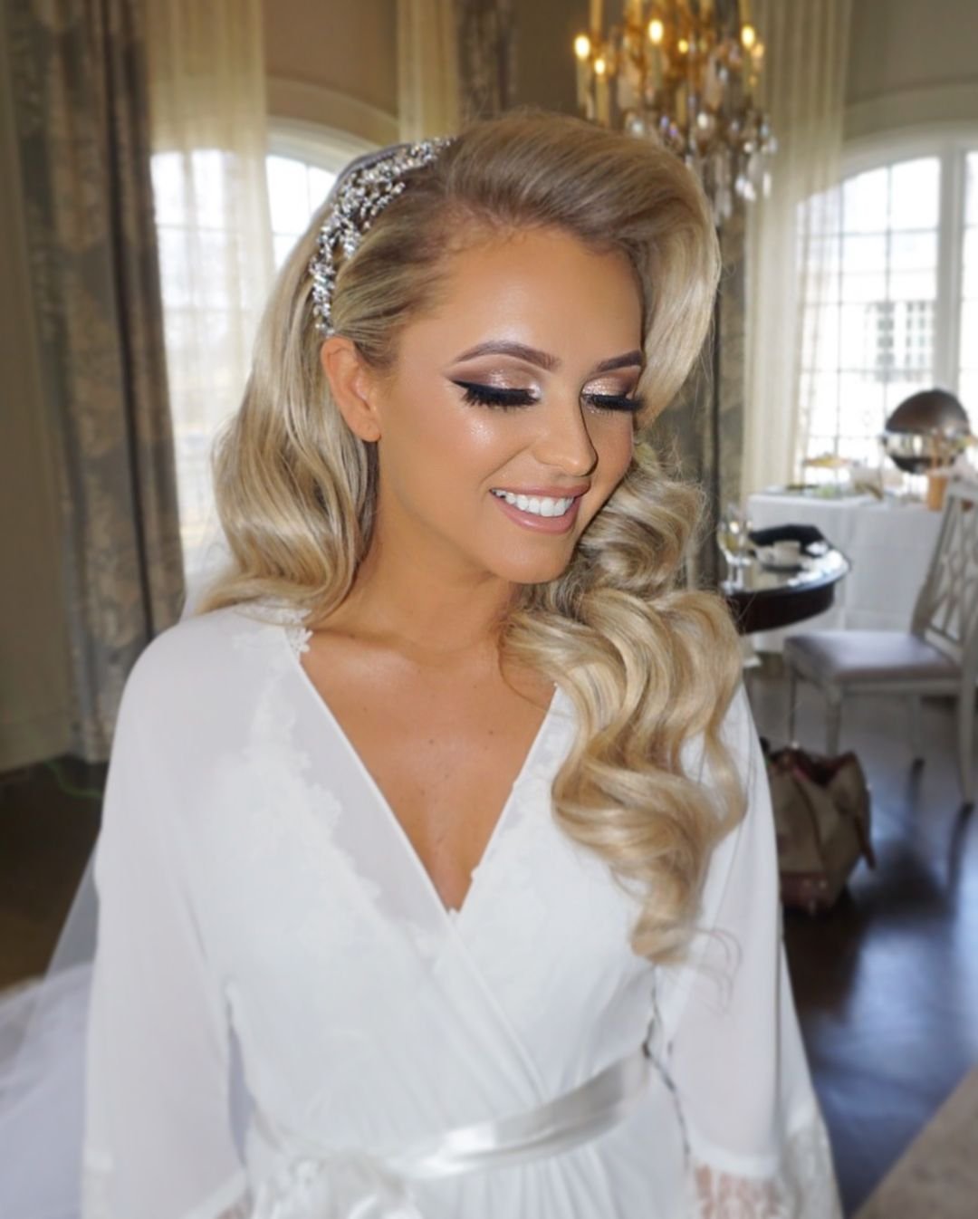 Свадебные прически голливудские Локоны с фатой