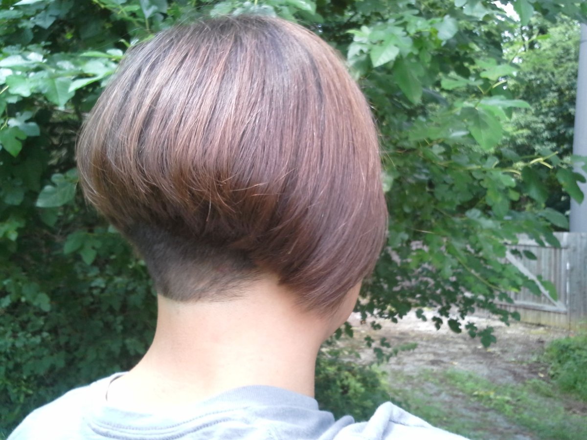 Короткая стрижка Боб каре на ножке вид сзади и спереди