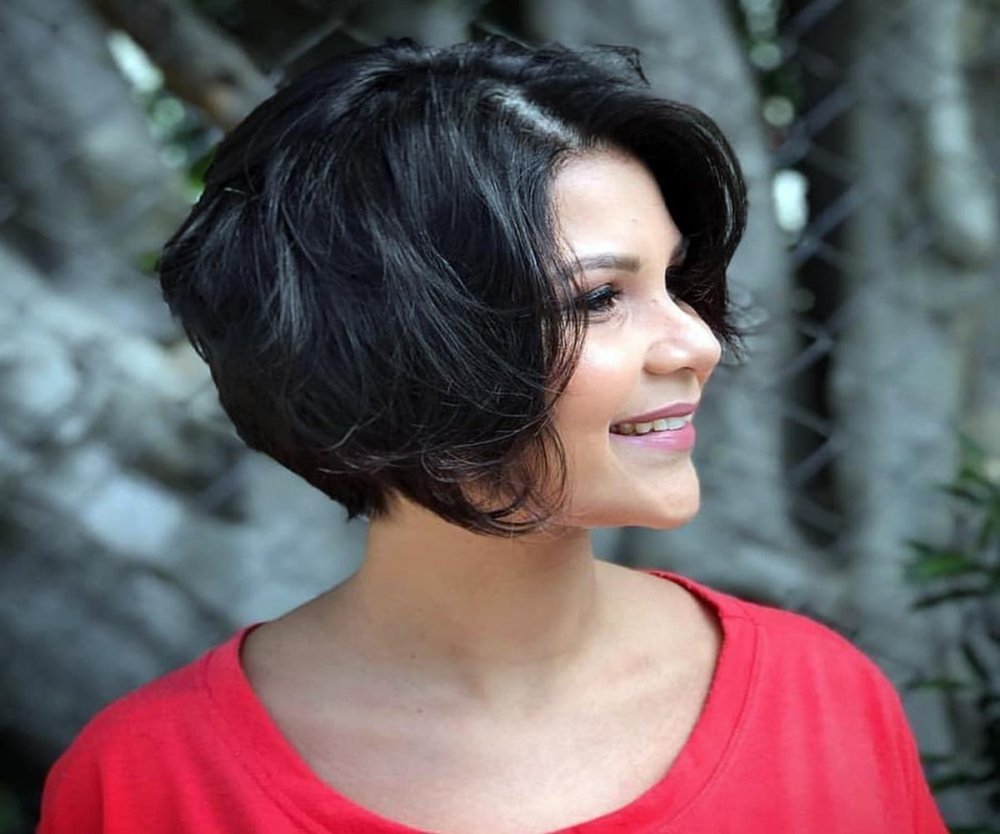 Стрижка Боб-каре на короткие волнистые волосы с челкой