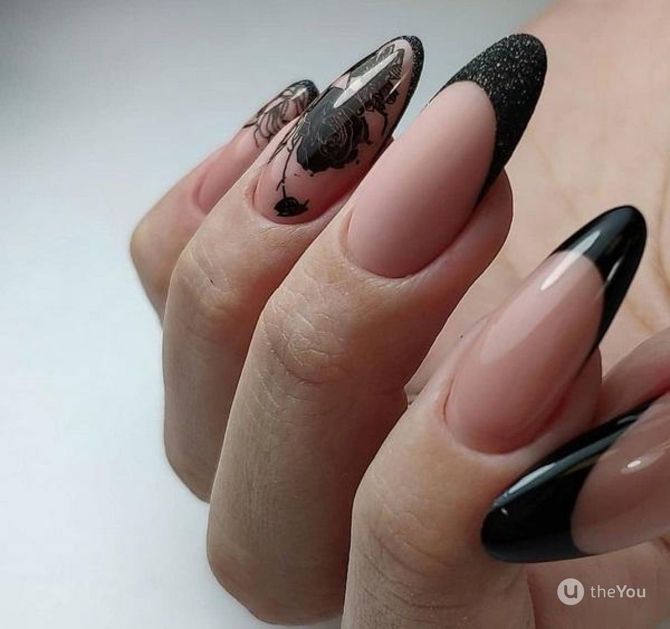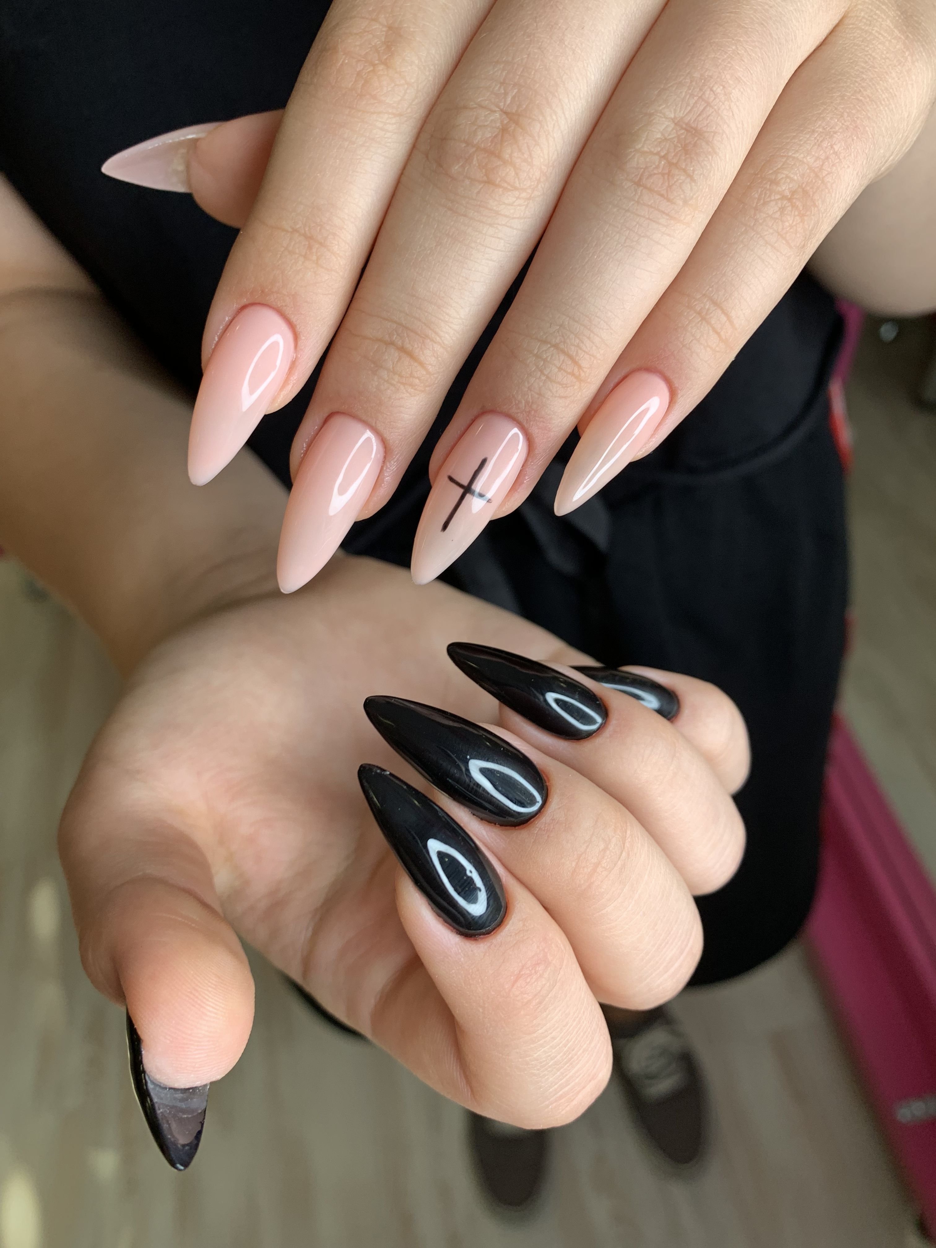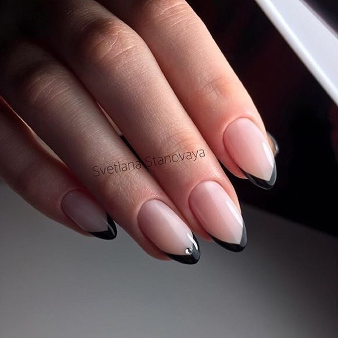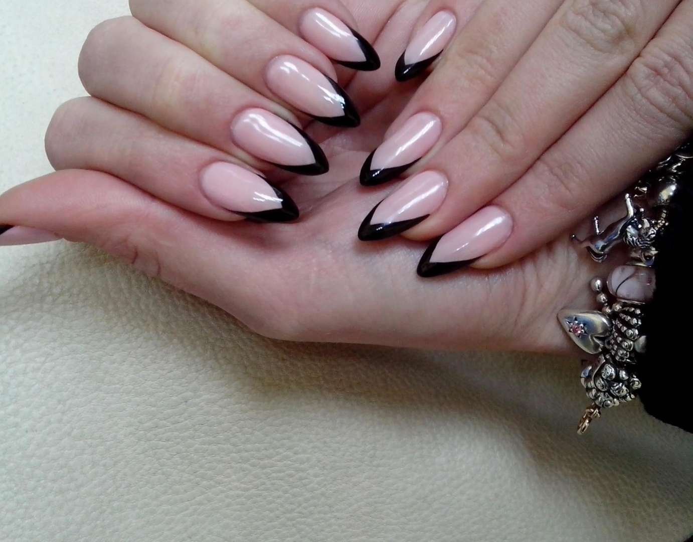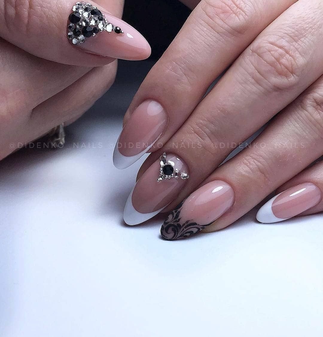 Молочный черный френч миндаль стилет