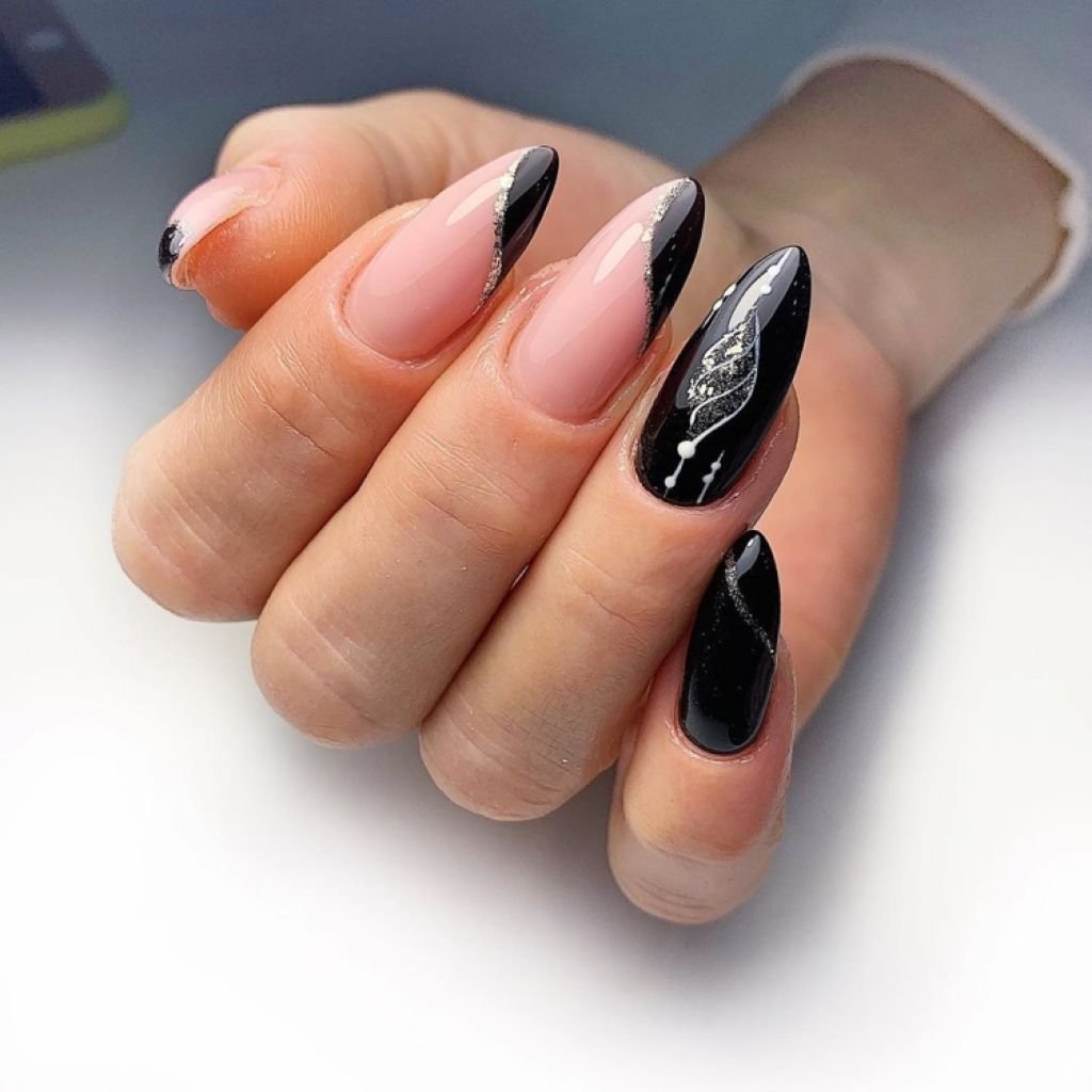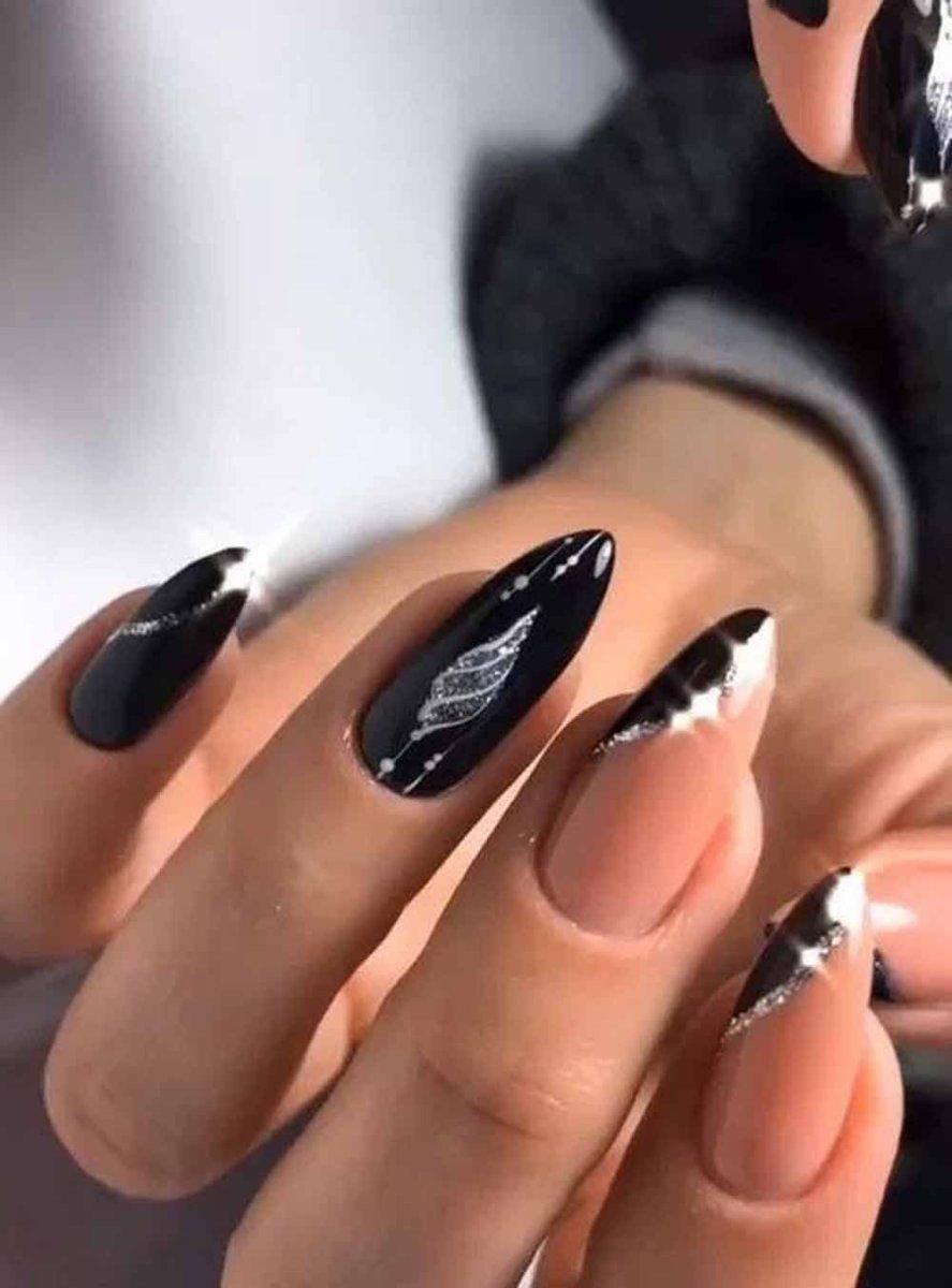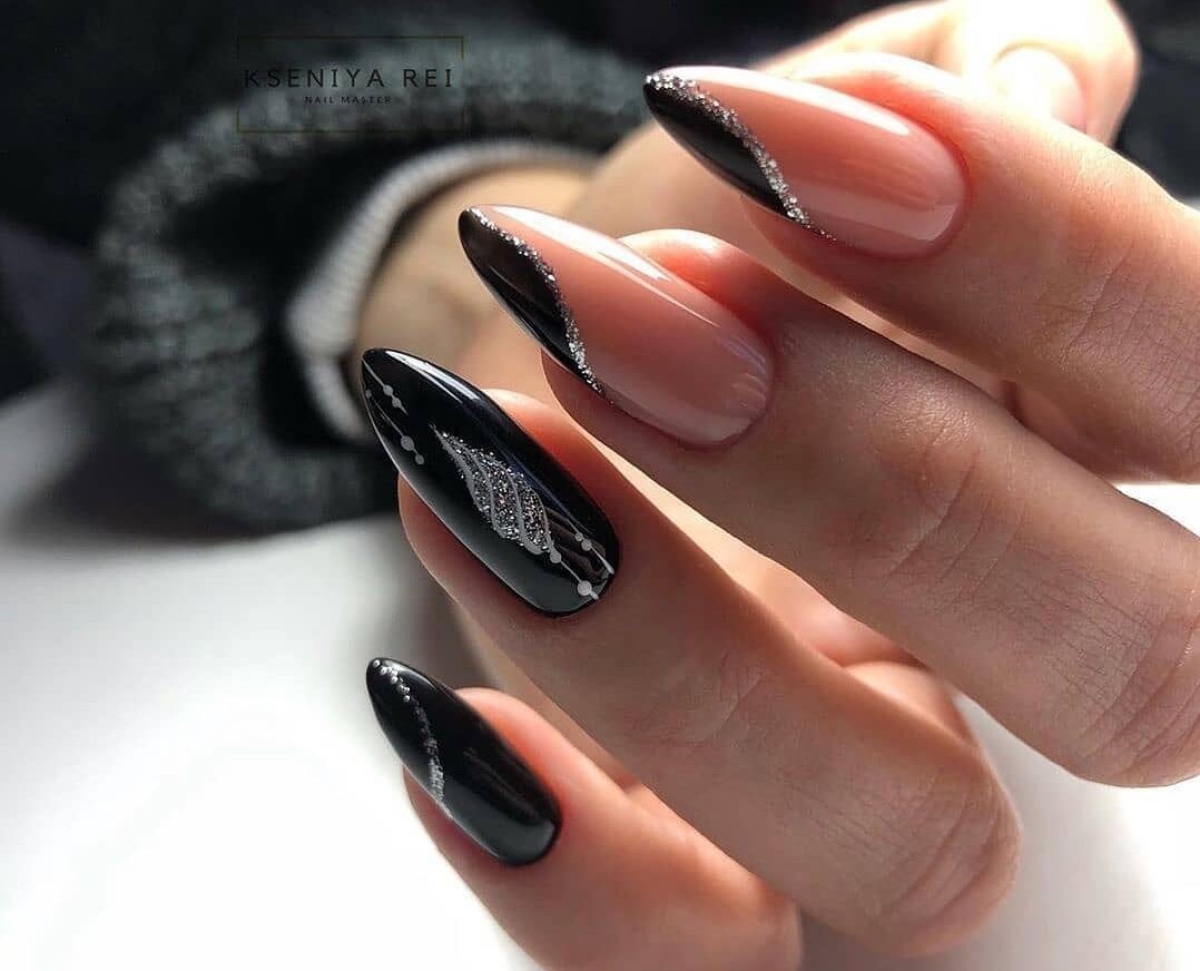 Чёрный маникюр 2022 на миндаль