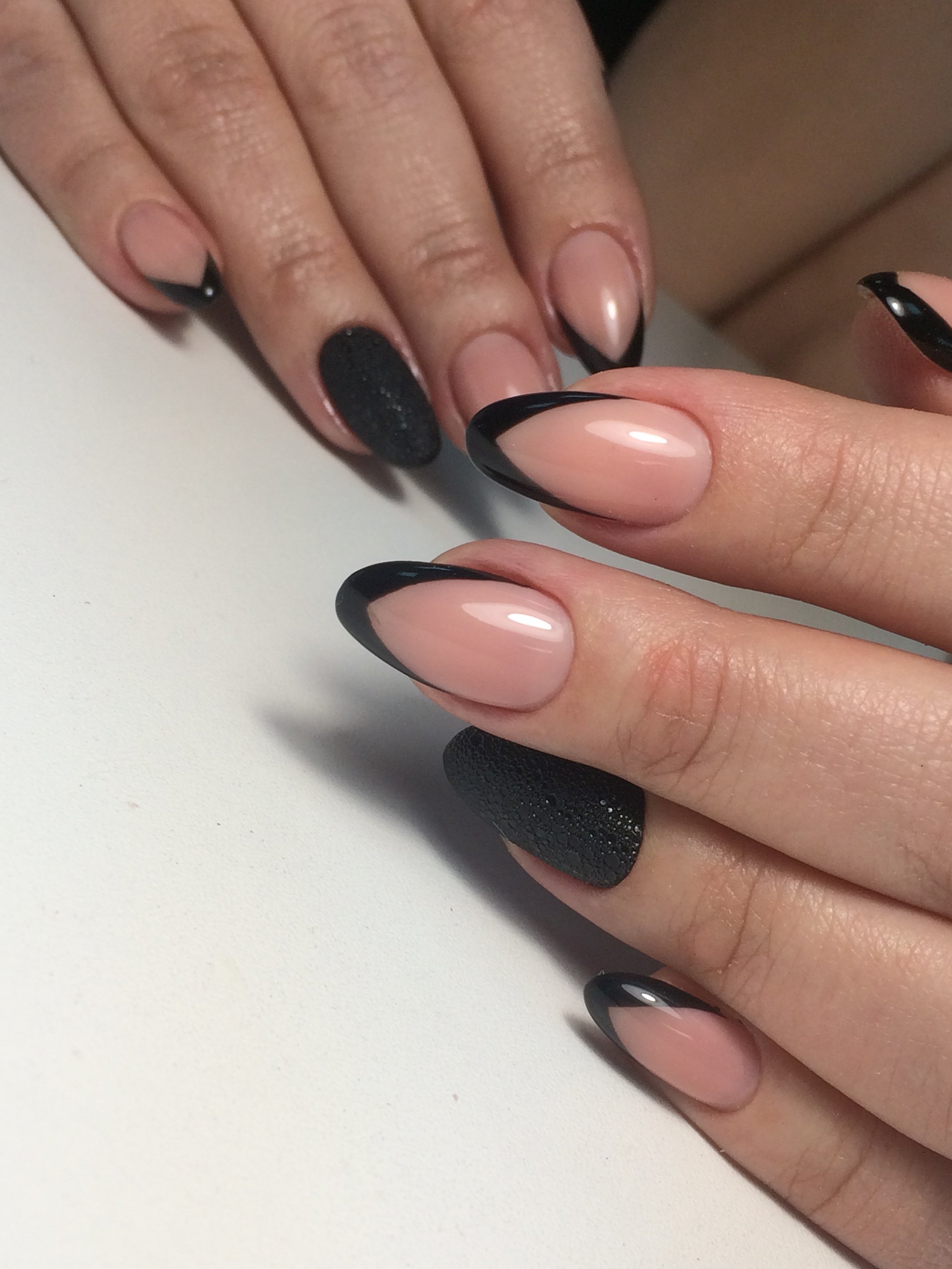 Белая база и черный френч миндаль