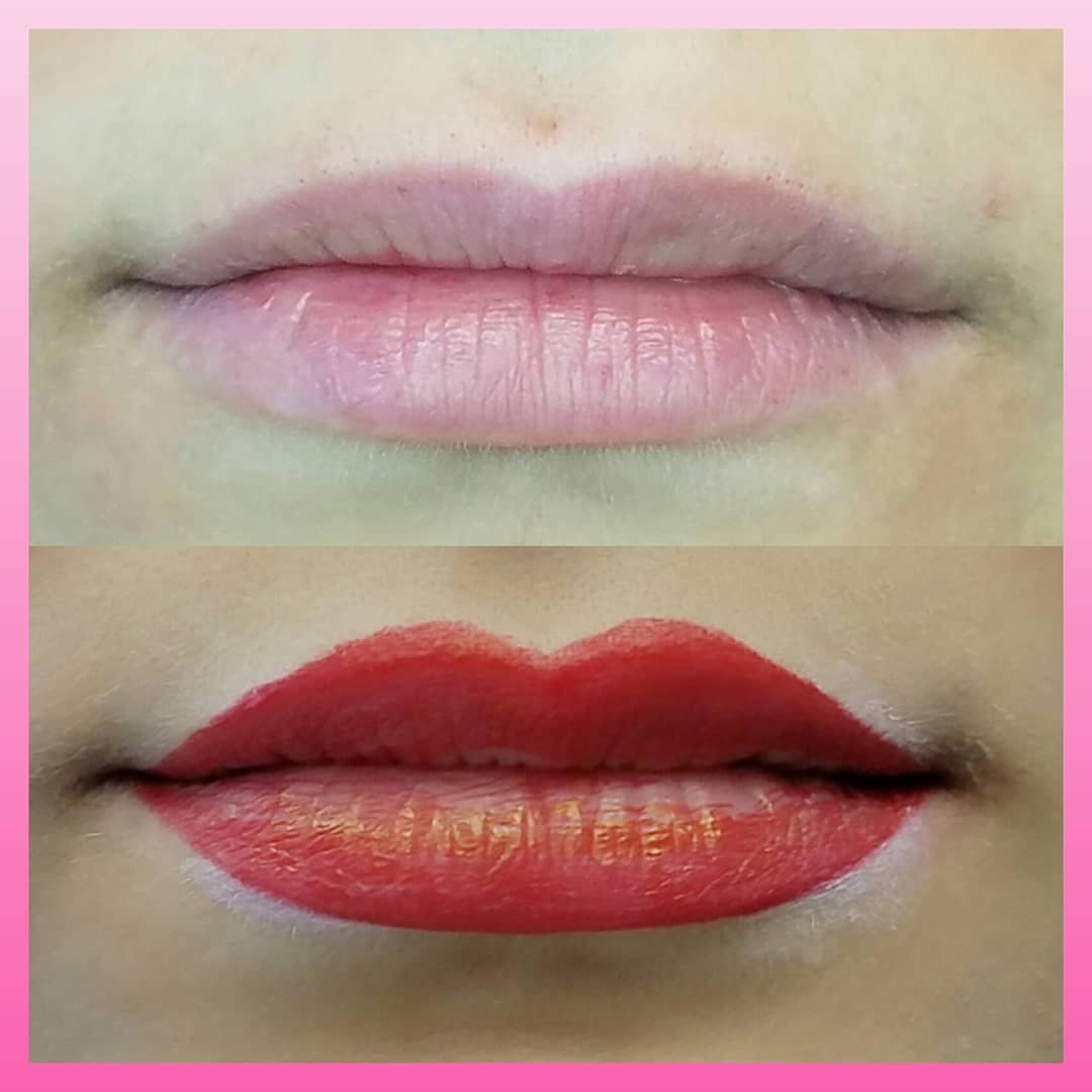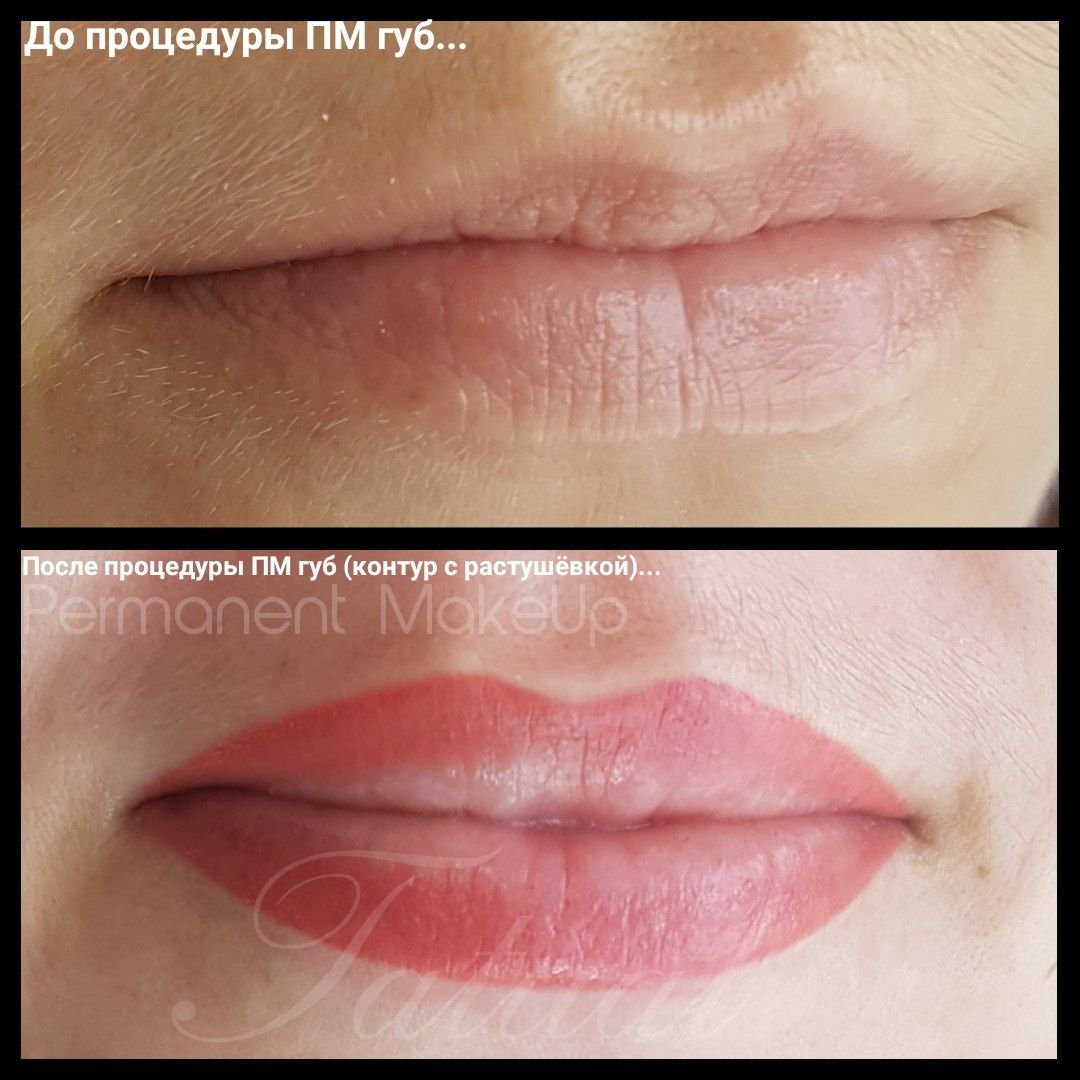 Перментальный макияж губ до и после оттенки