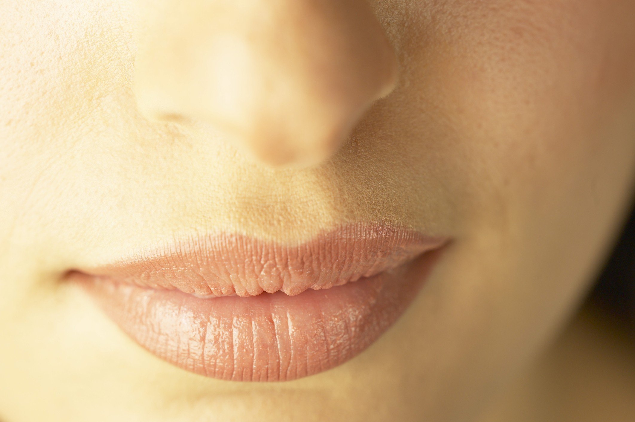 Бежевые губы макро на белом фоне