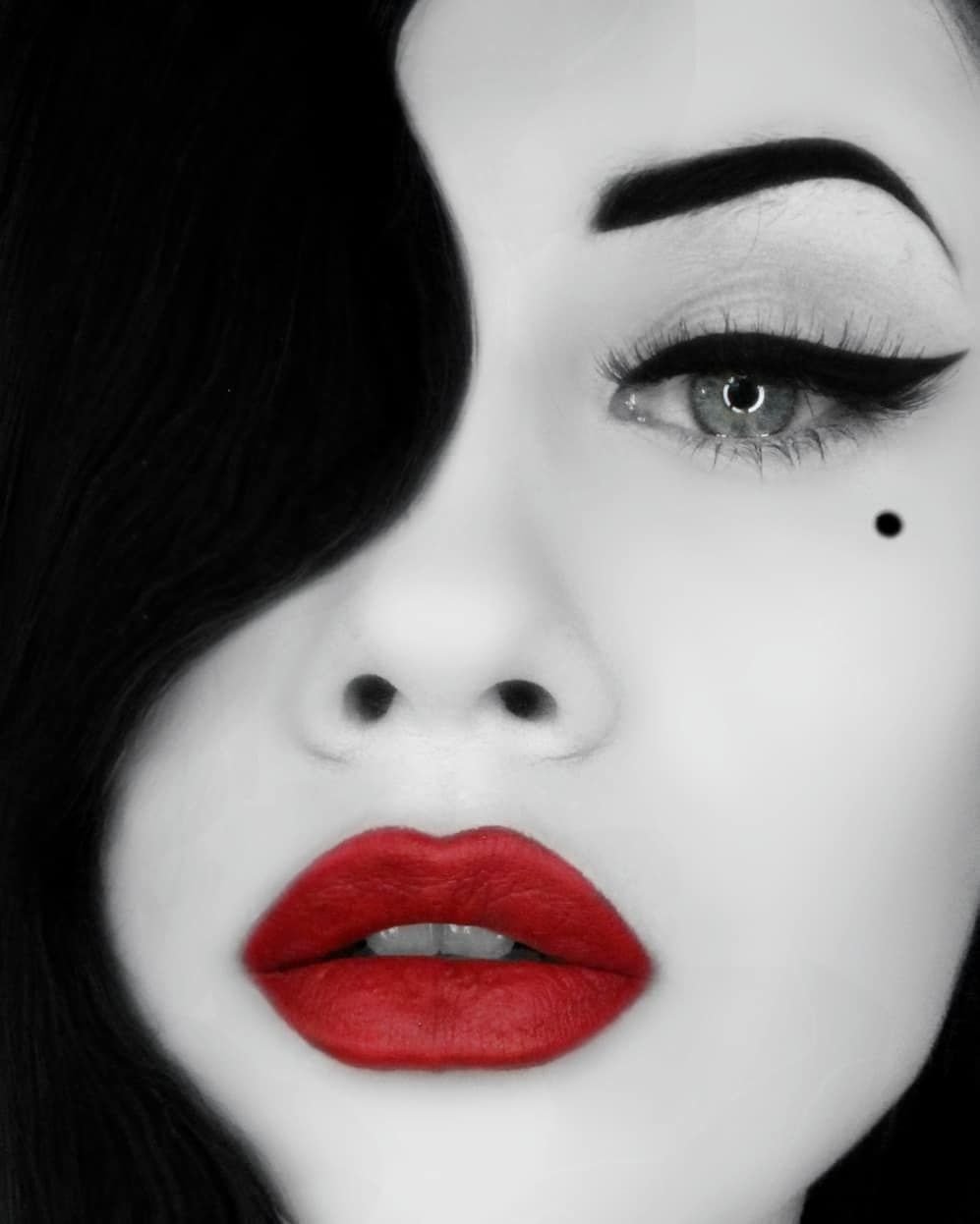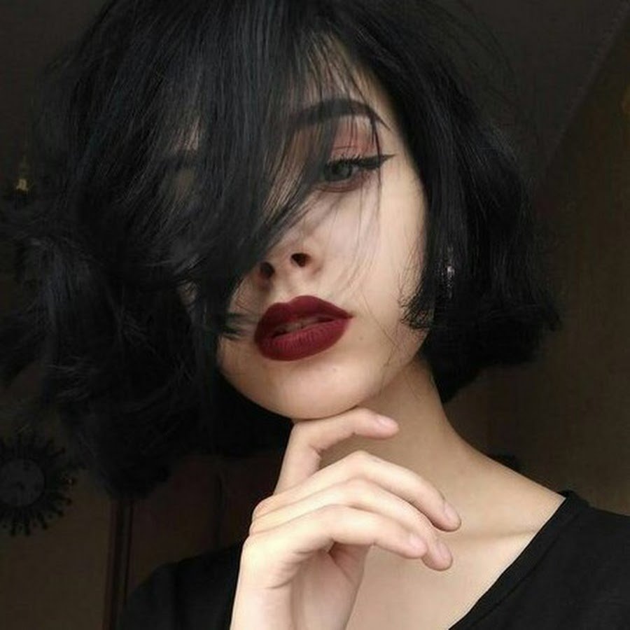 Черные волосы красные губы