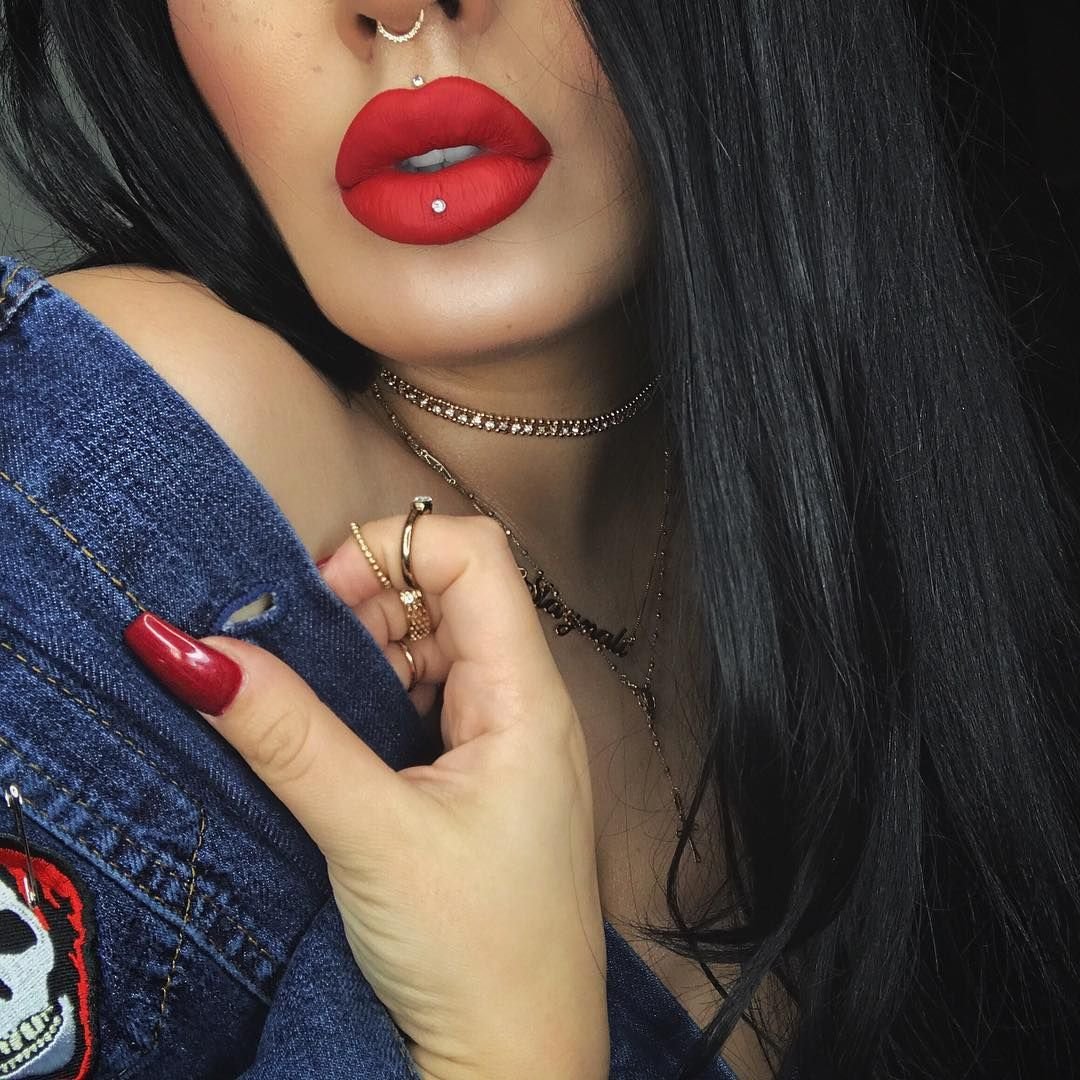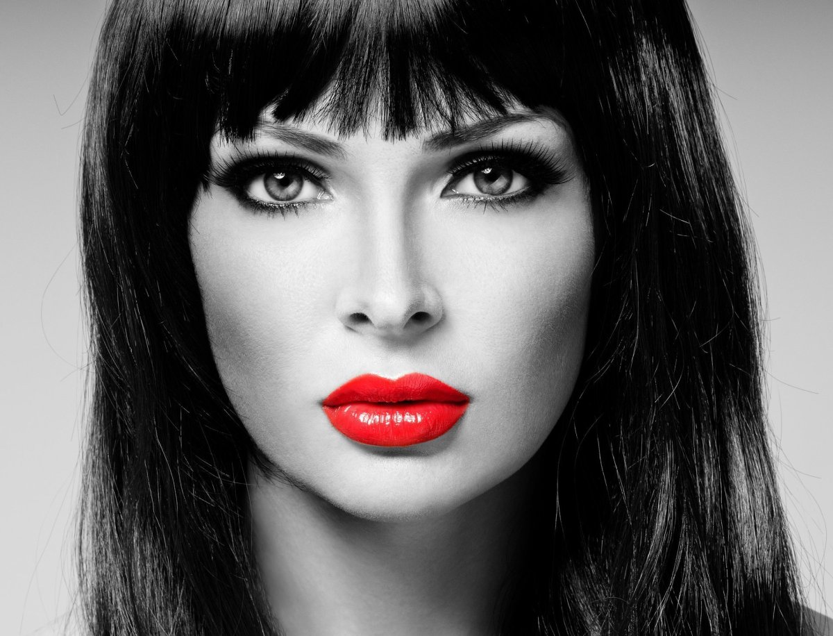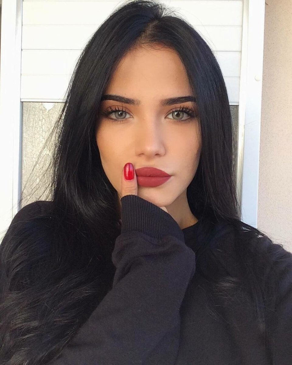 Девушка черные волосы красные губы