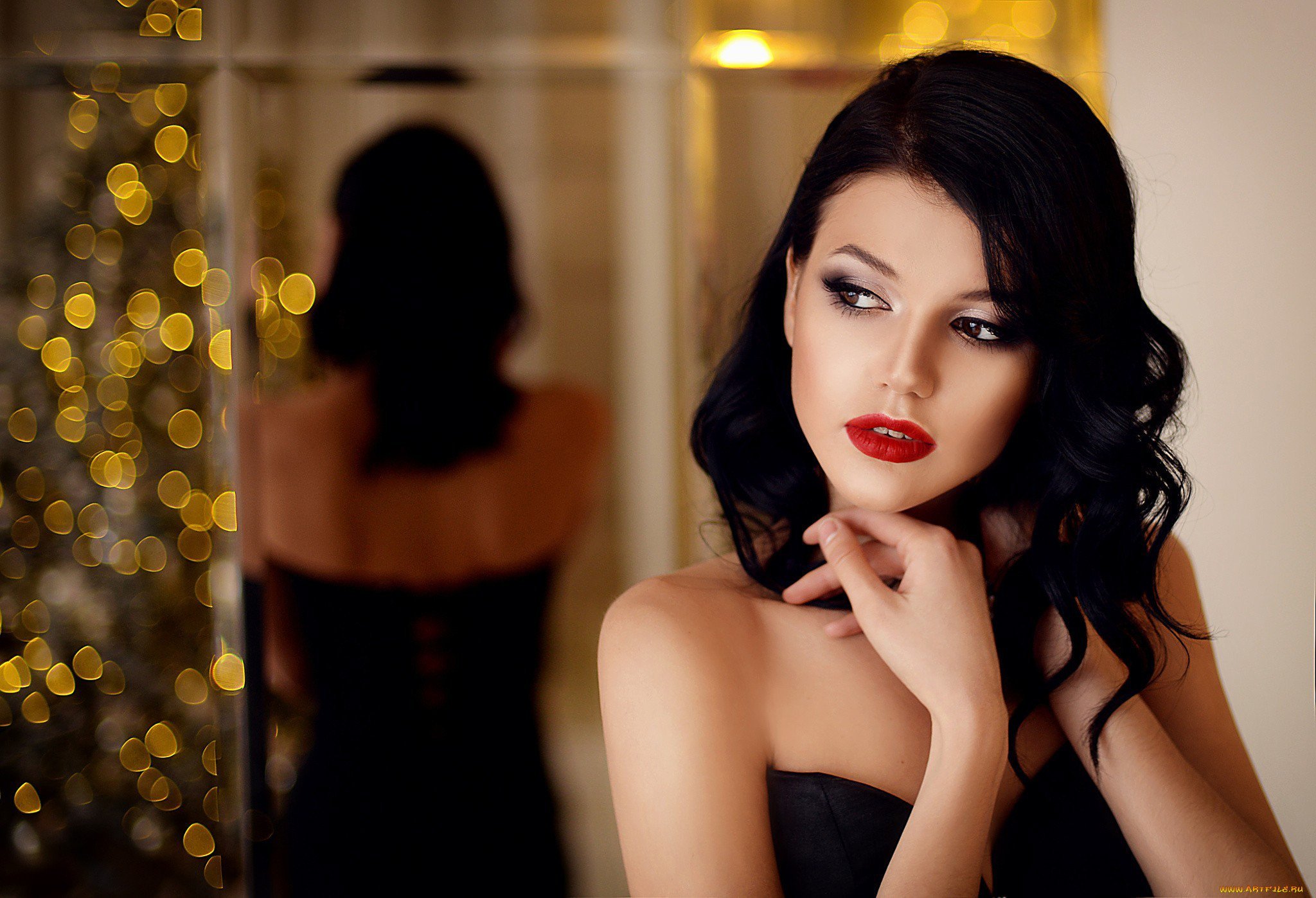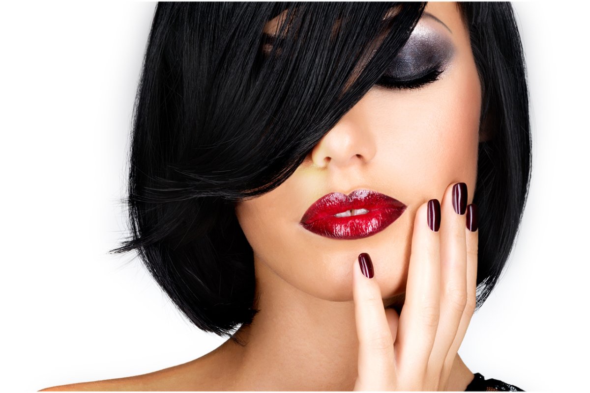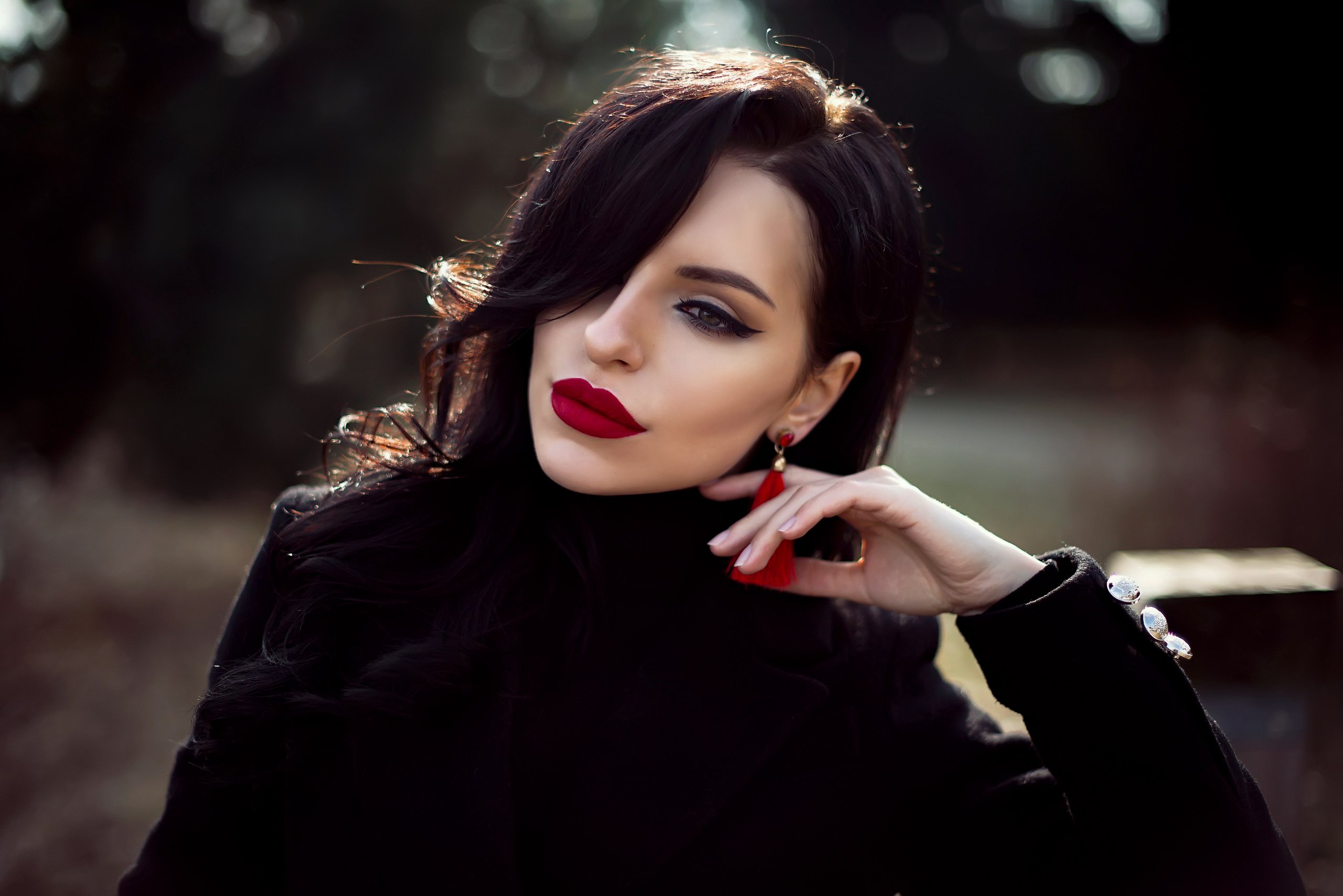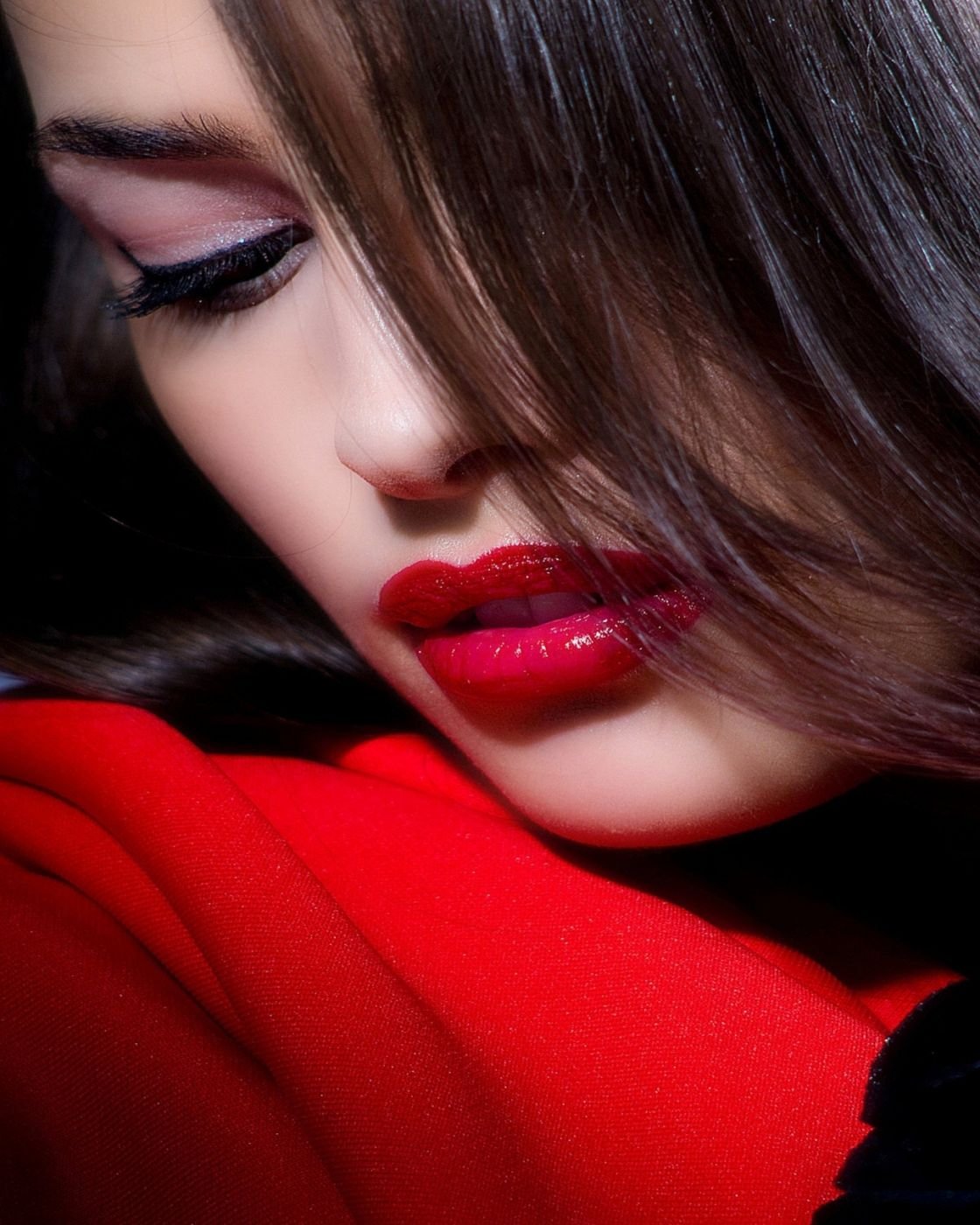 Девушка черные волосы красные губы