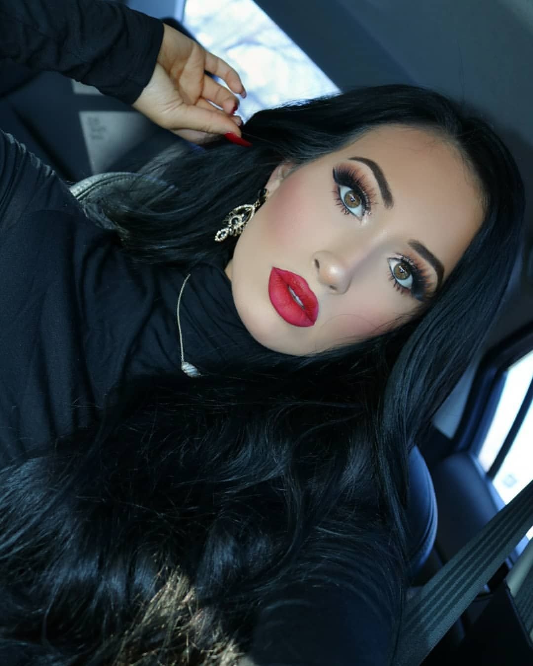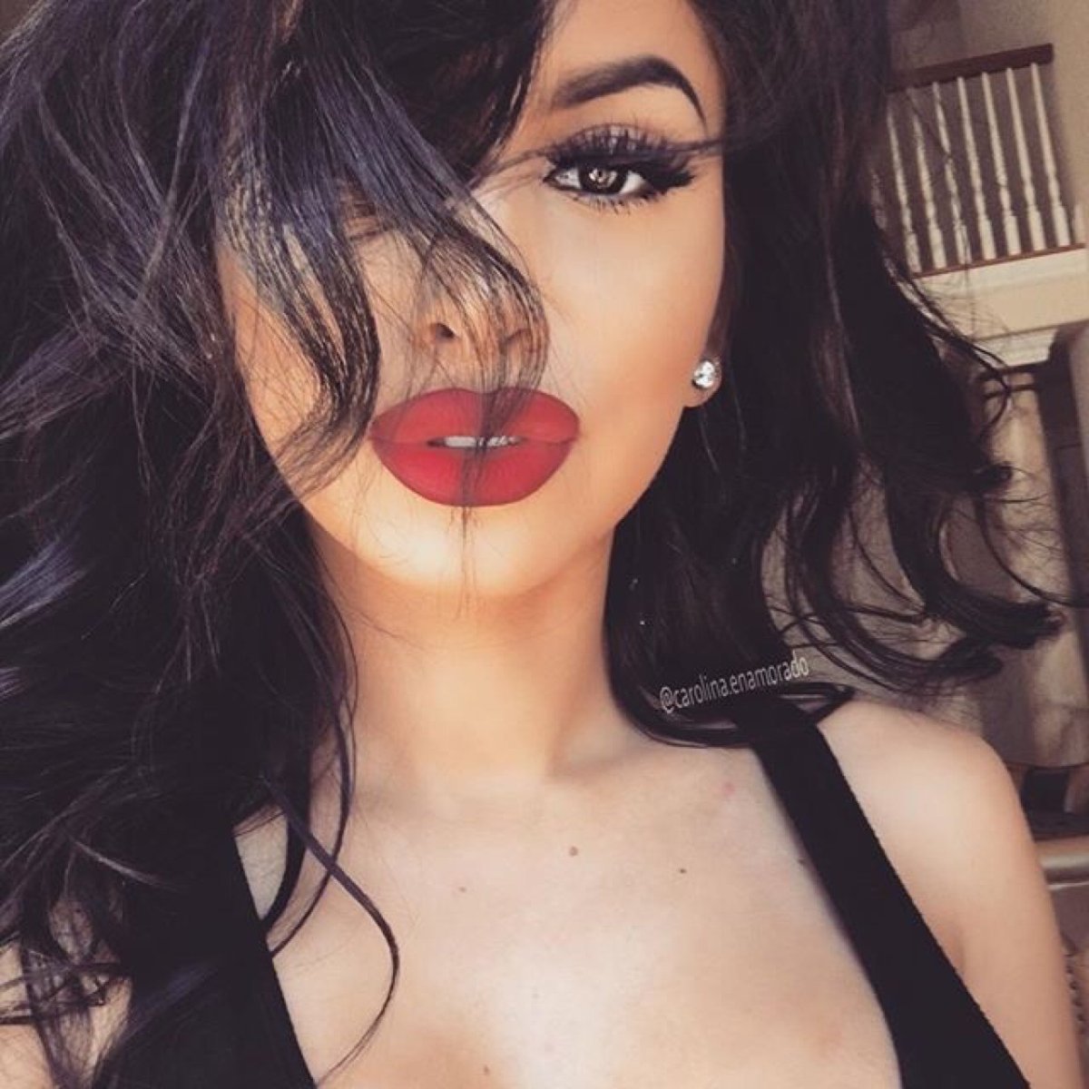 Селфи брюнетки с красными губами