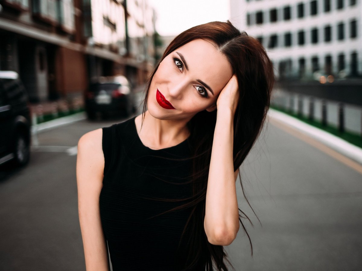Жгучая брюнетка с красной помадой