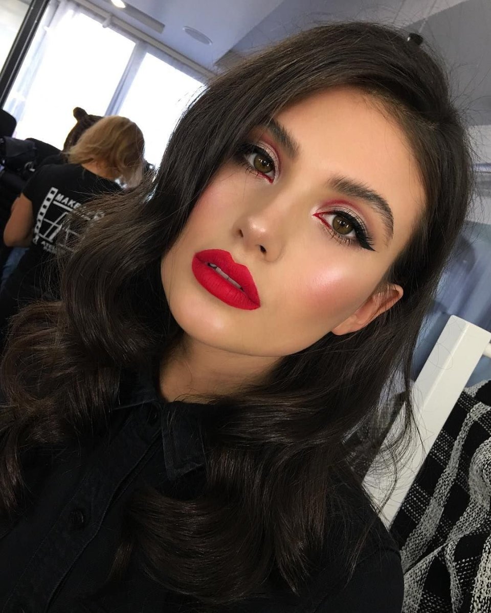 Макияж с красными губами