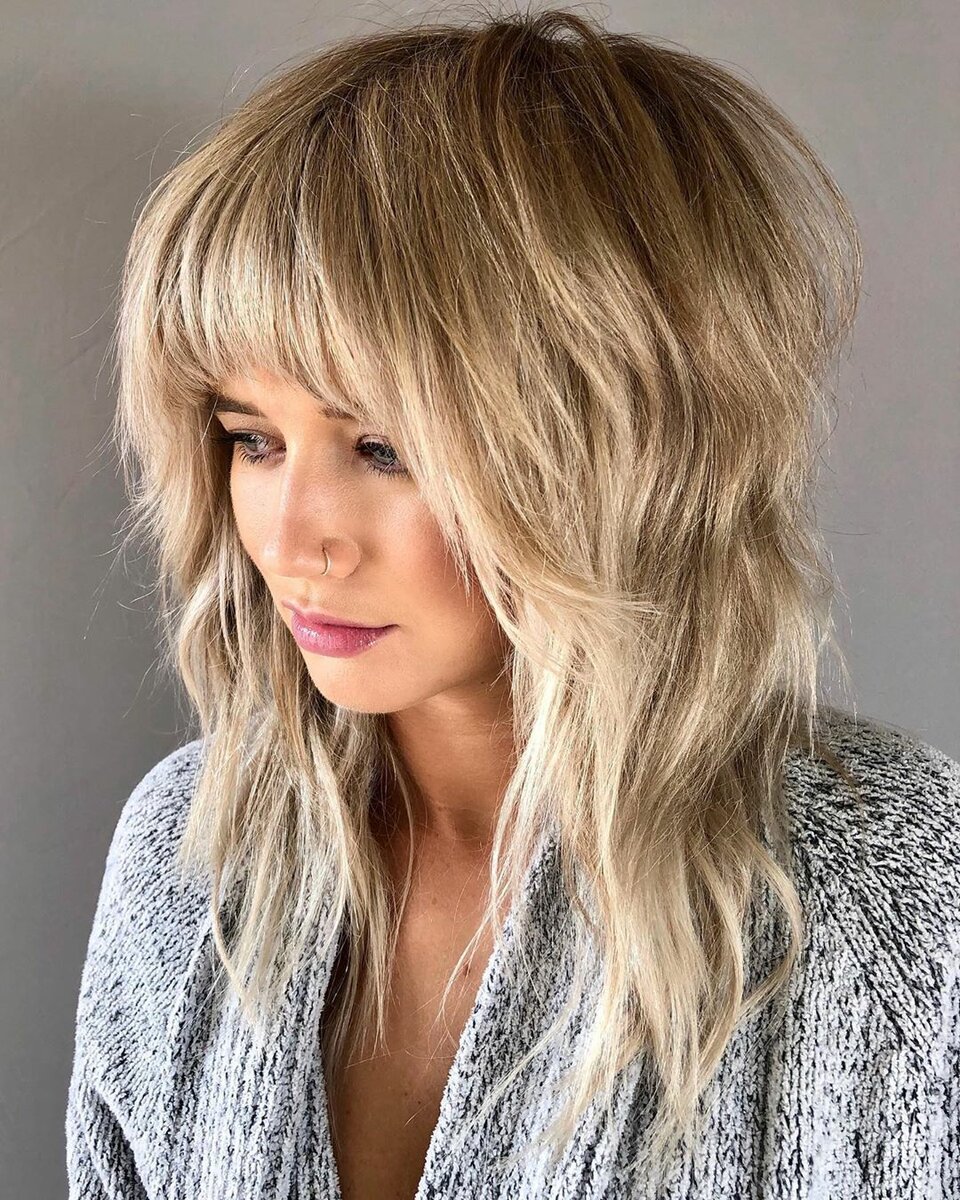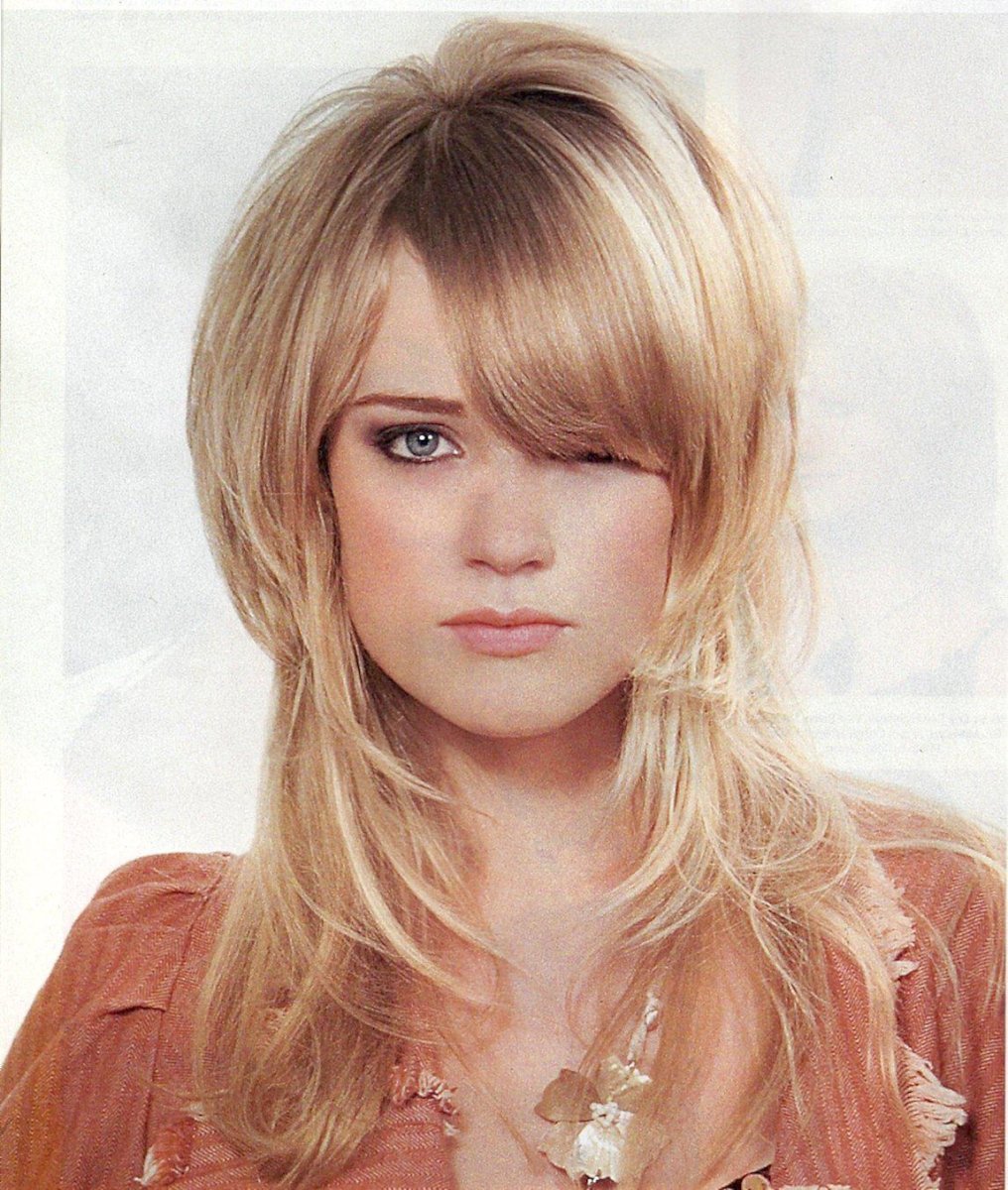 Каскад с рваной челкой на средние
