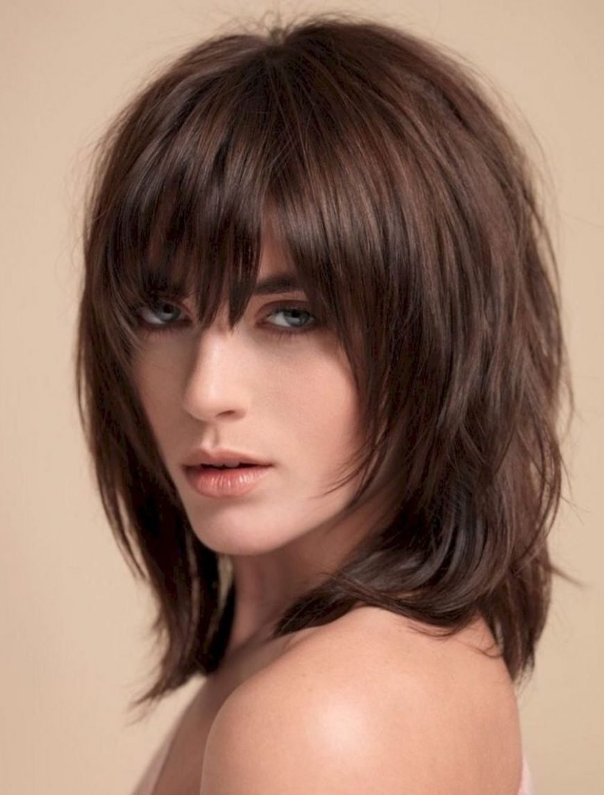Стрижка Каскад Гаврош на средние волосы с челкой