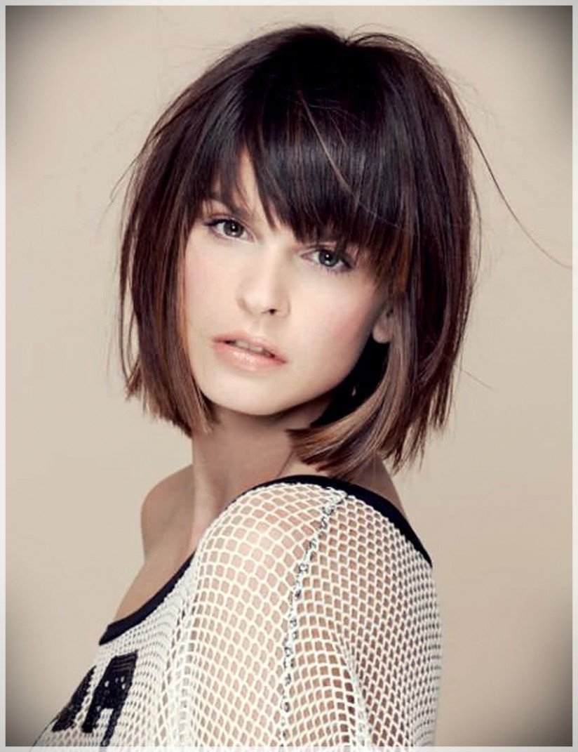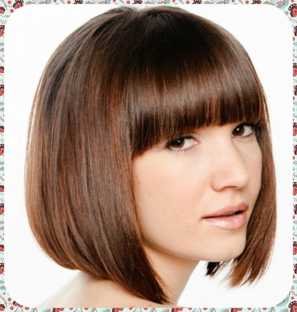 Стрижка Боб каре на средние волосы с челкой для овального лица