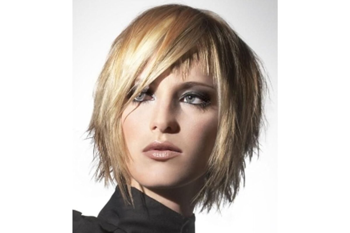 Стрижка Каскад асимметрия на короткие волосы с челкой