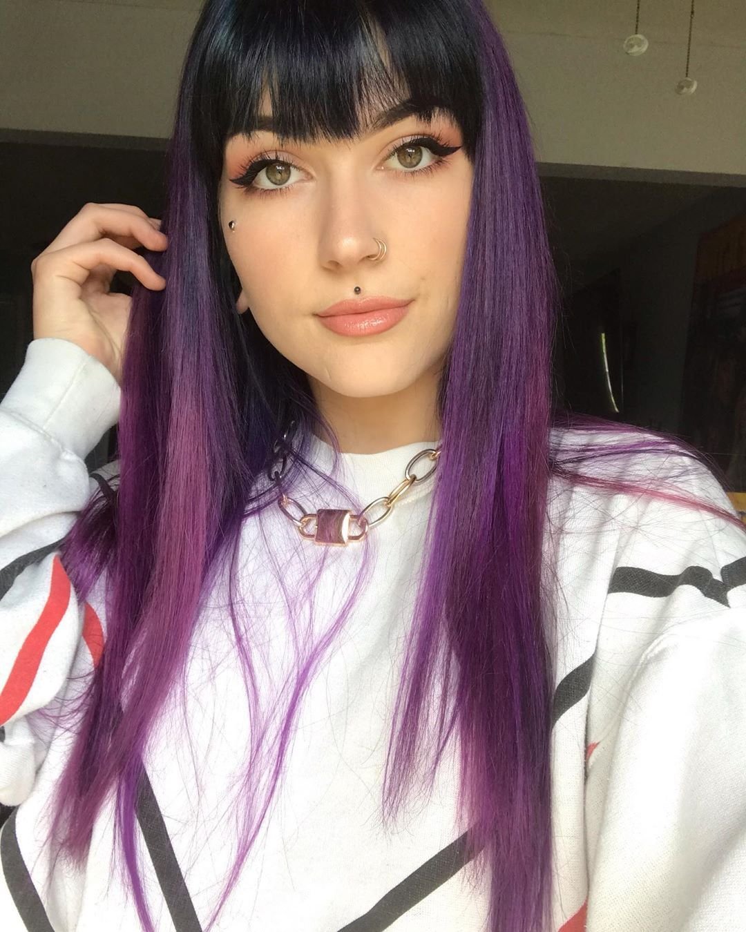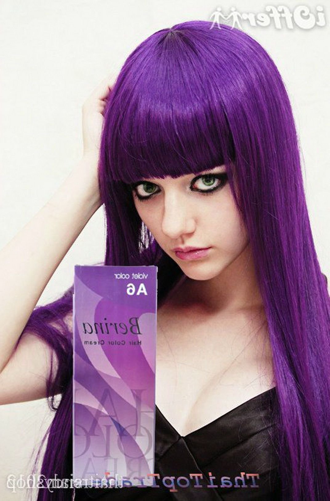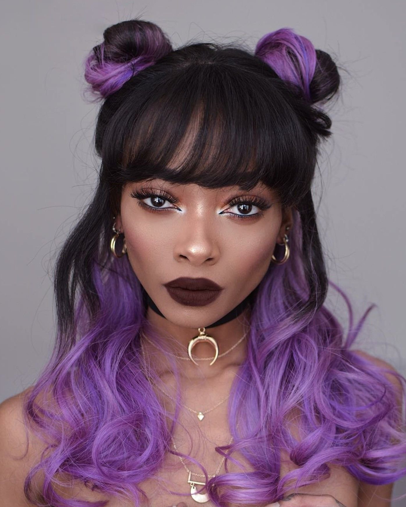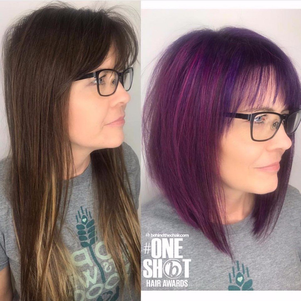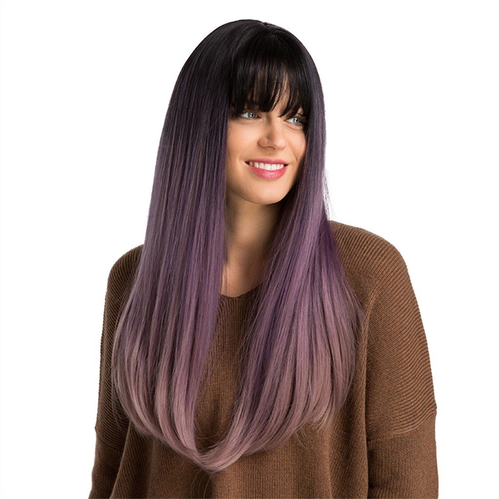 Фиолетовые волосы с челкой