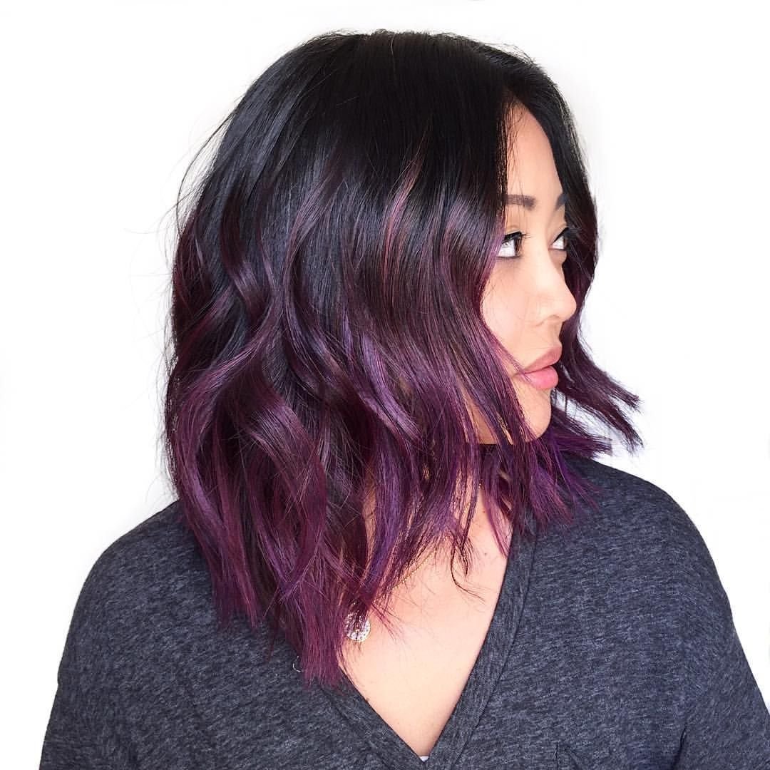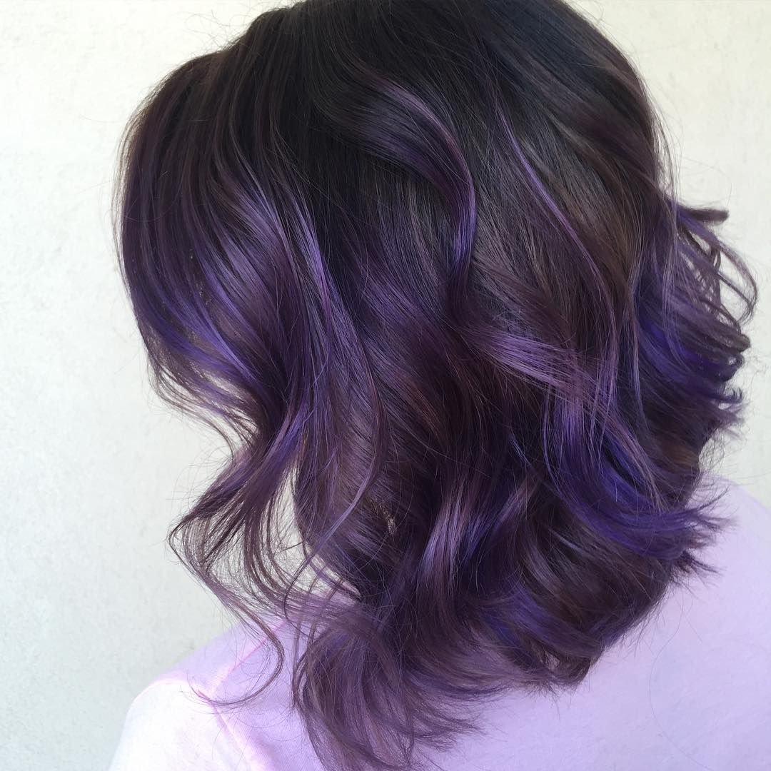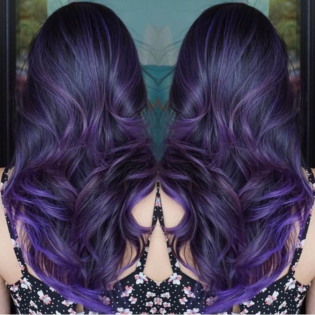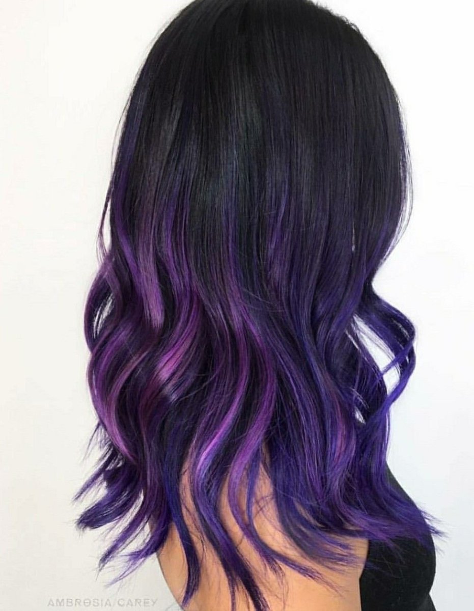 Фиолетовое омбре на темные волосы