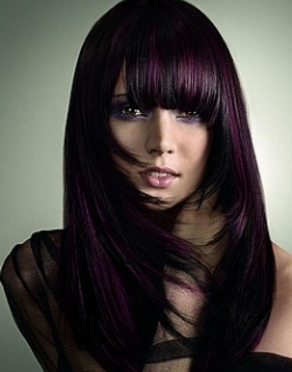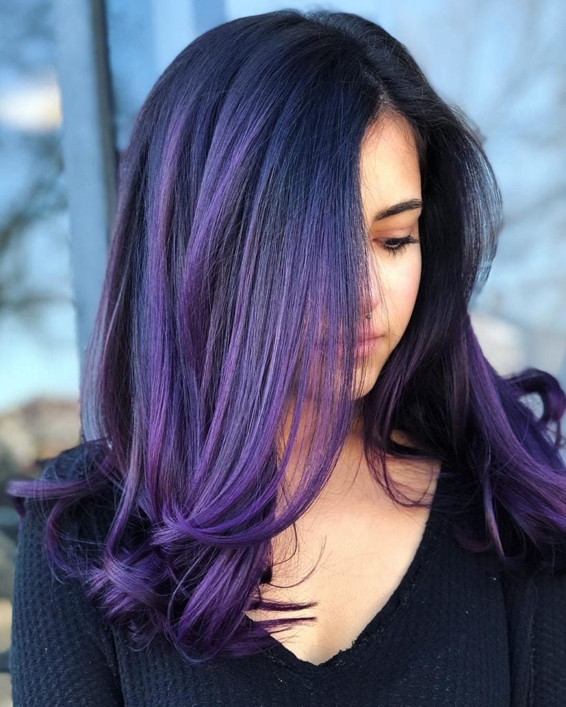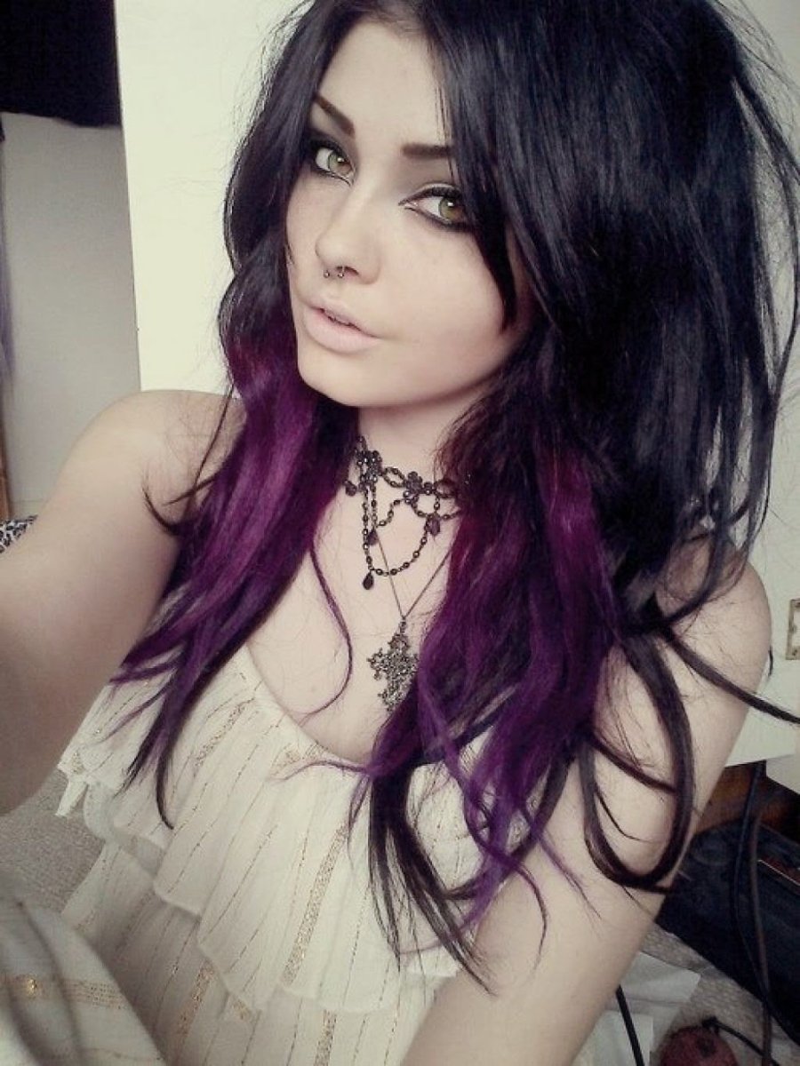 Чёрные волосы с фиолетовыми прядями