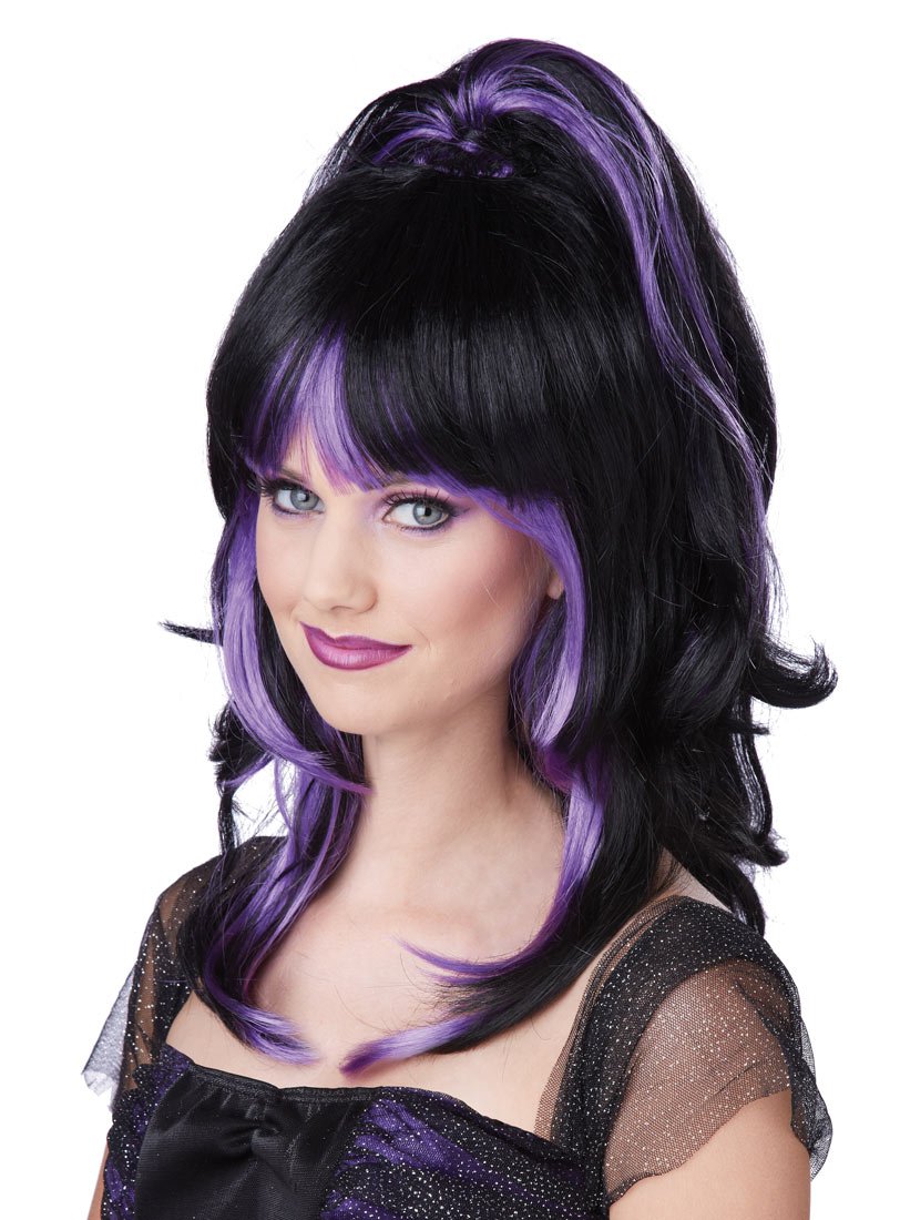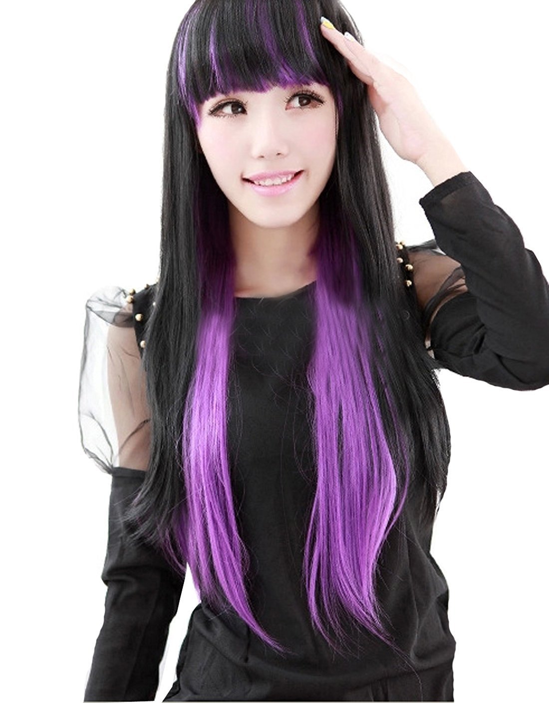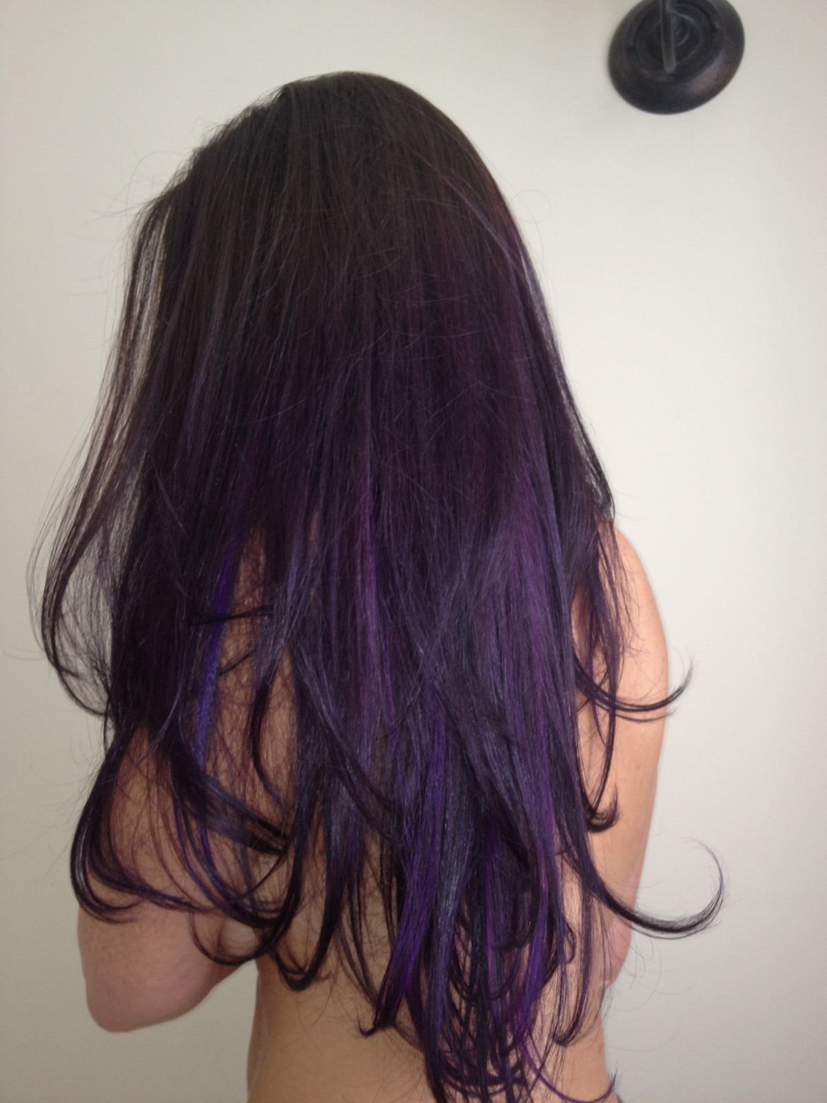 Чёрные волосы с фиолетовыми прядями