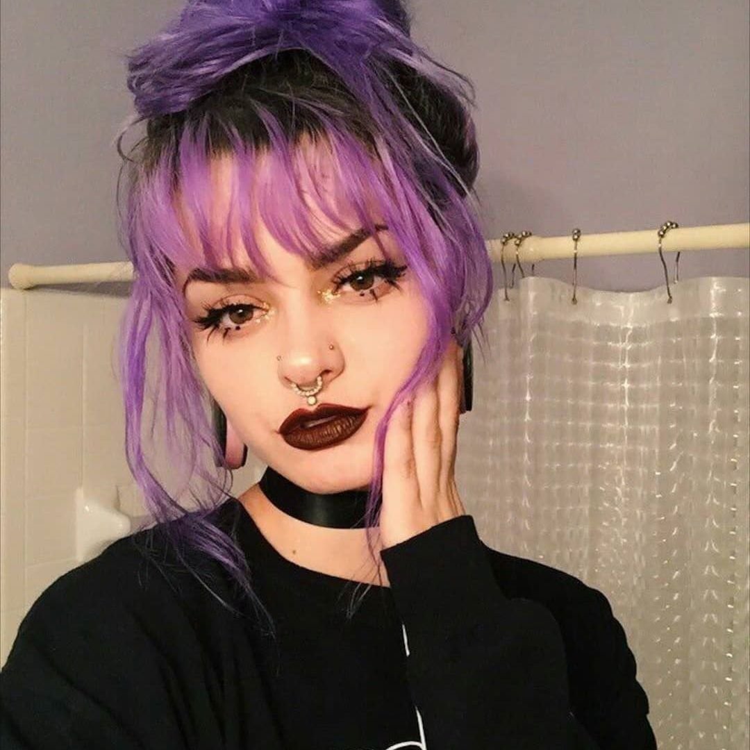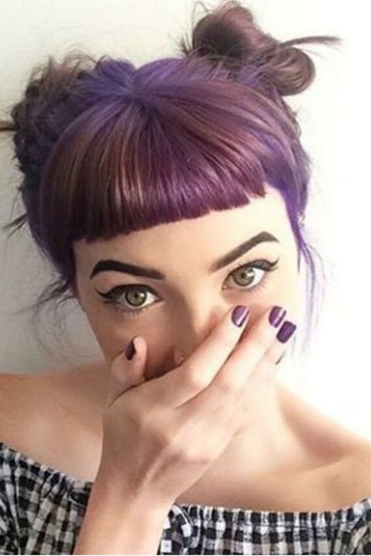 Короткая челка лиловые волосы