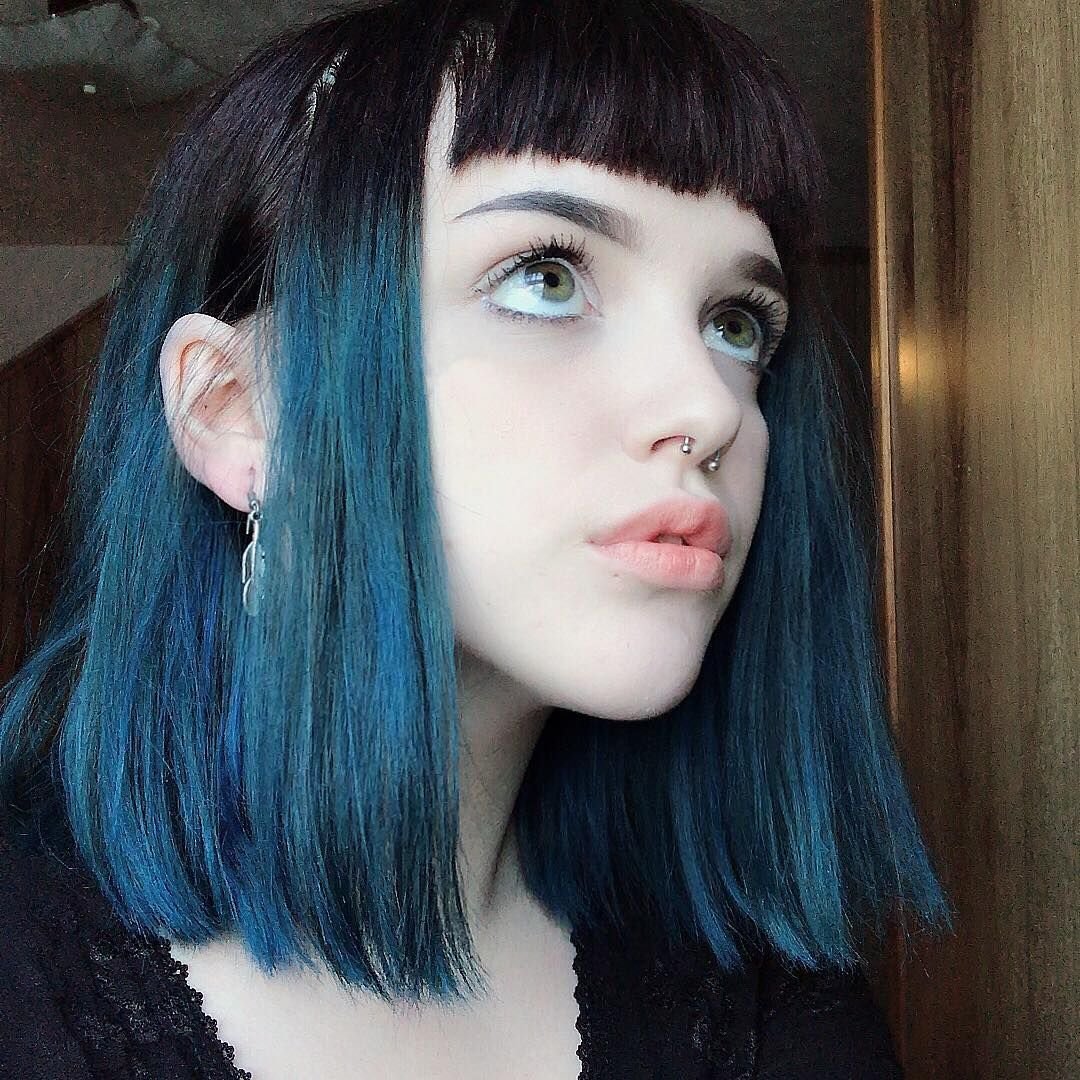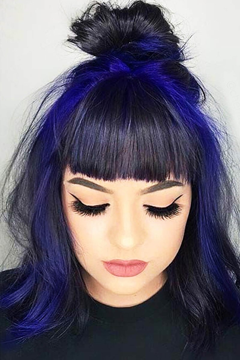 Синие волосы с челкой